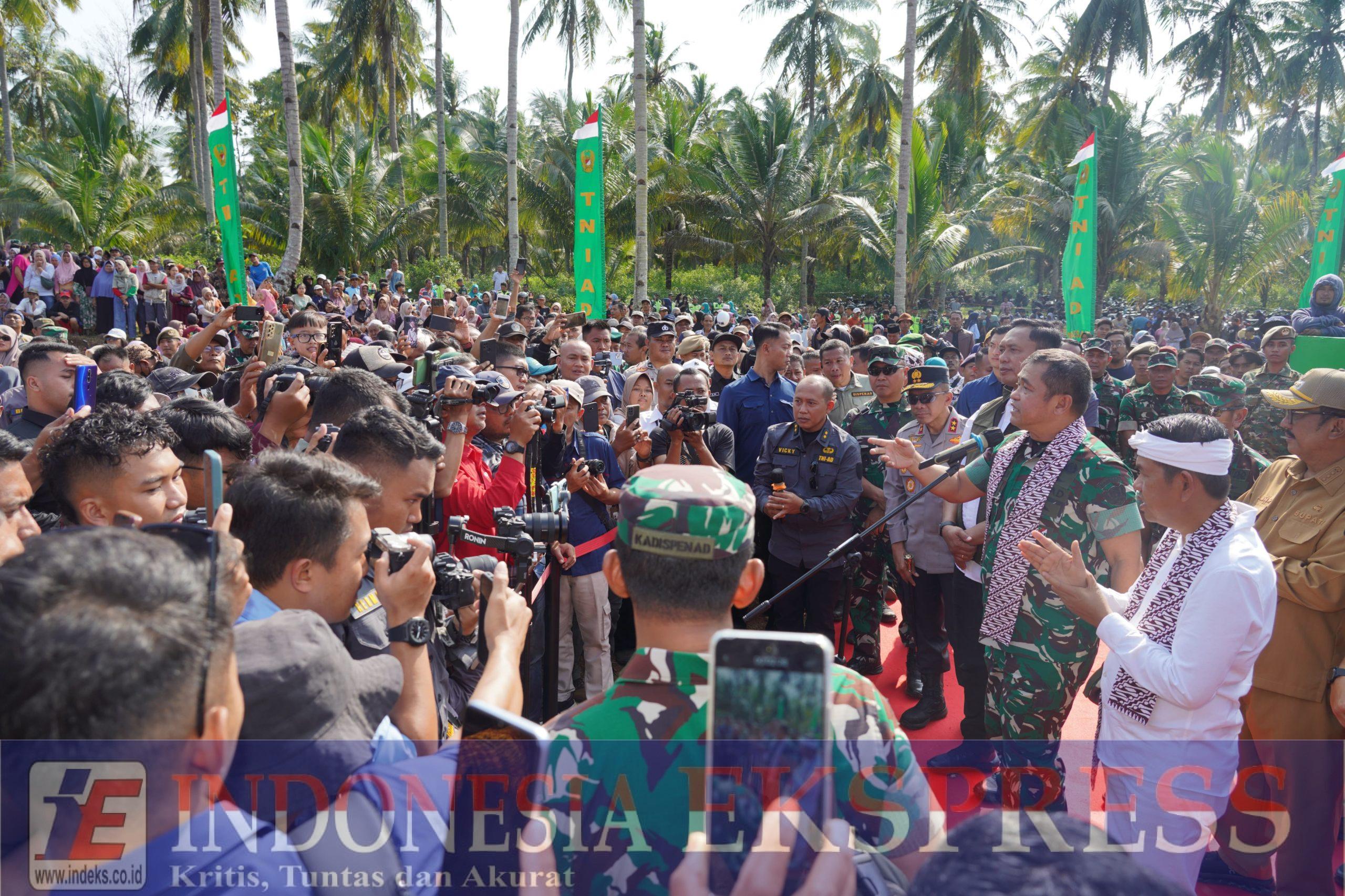 Mengakhiri kunjungannya, Kasad juga secara simbolis membagikan 500 paket sembako kepada kelompok tani dan warga Desa Pangumbahan, Kecamatan Ciracap, Sukabumi, sebagai wujud kepedulian TNI AD terhadap kesejahteraan masyarakat.