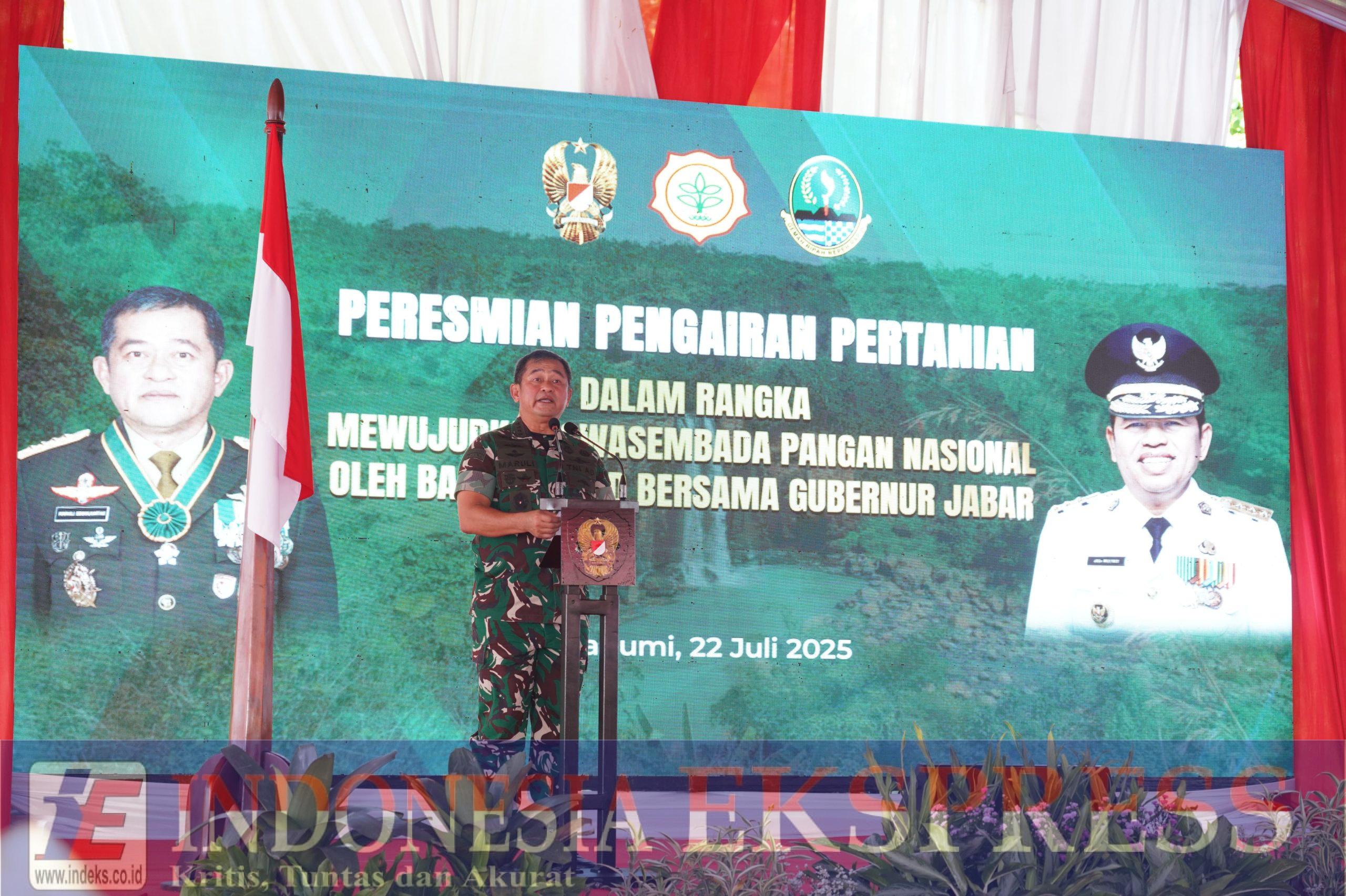 JAKARTA, INDEKS.co.id – Sebagai bentuk nyata pengabdian kepada rakyat, TNI AD menghadirkan sarana pengairan baru yang menghidupkan kembali lahan tadah hujan di Kecamatan Ciracap, Sukabumi, Jawa Barat (Jabar). Sarana yang diresmikan langsung oleh Kepala Staf Angkatan Darat (Kasad) Jenderal TNI Maruli Simanjuntak, M.Sc., pada Selasa (22/7/2025) ini, mampu mengairi hingga 424 hektar sawah warga setempat.