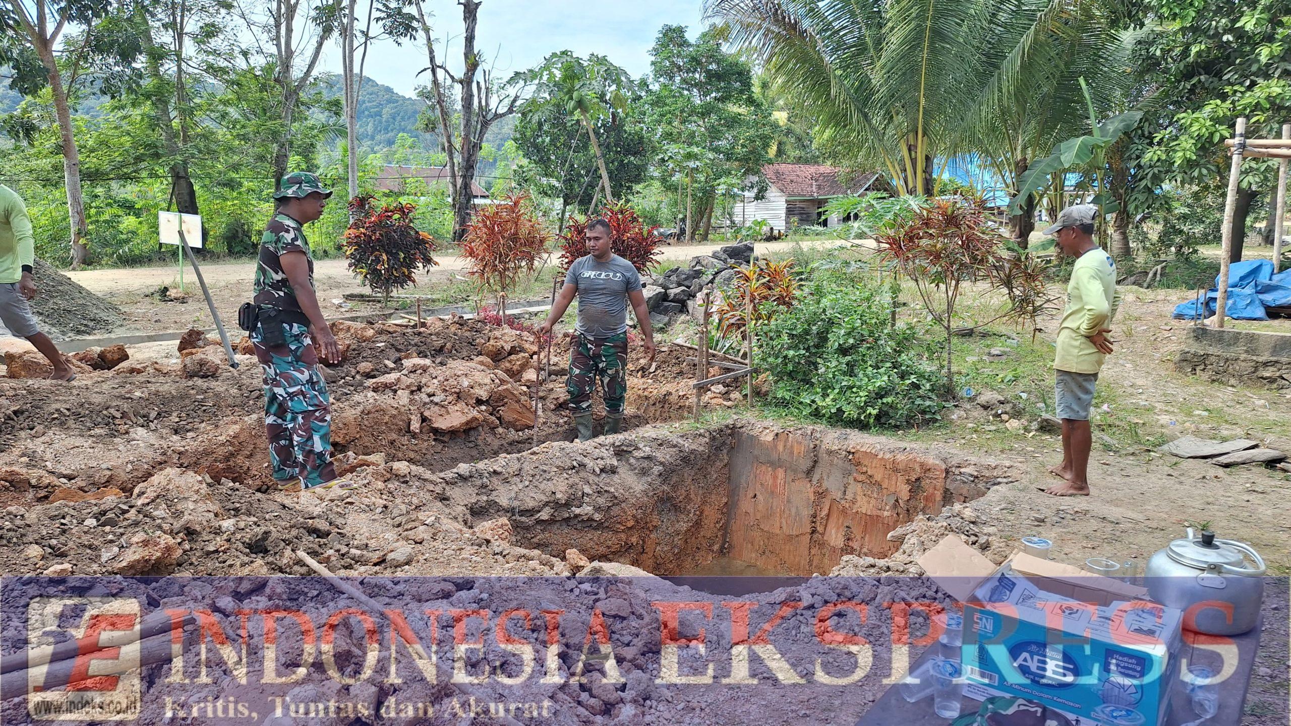 Kehadiran alat berat dalam pengerjaan pembangunan fasilitas mandi, cuci, kakus (MCK) di desa tersebut rupanya menjadi tontonan yang menghibur bagi anak-anak. Mereka tampak antusias menyaksikan excavator yang sedang menggaruk tanah bersama para personel TNI dan warga setempat.