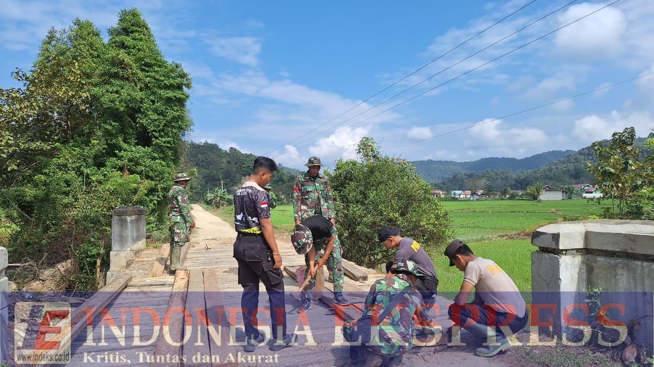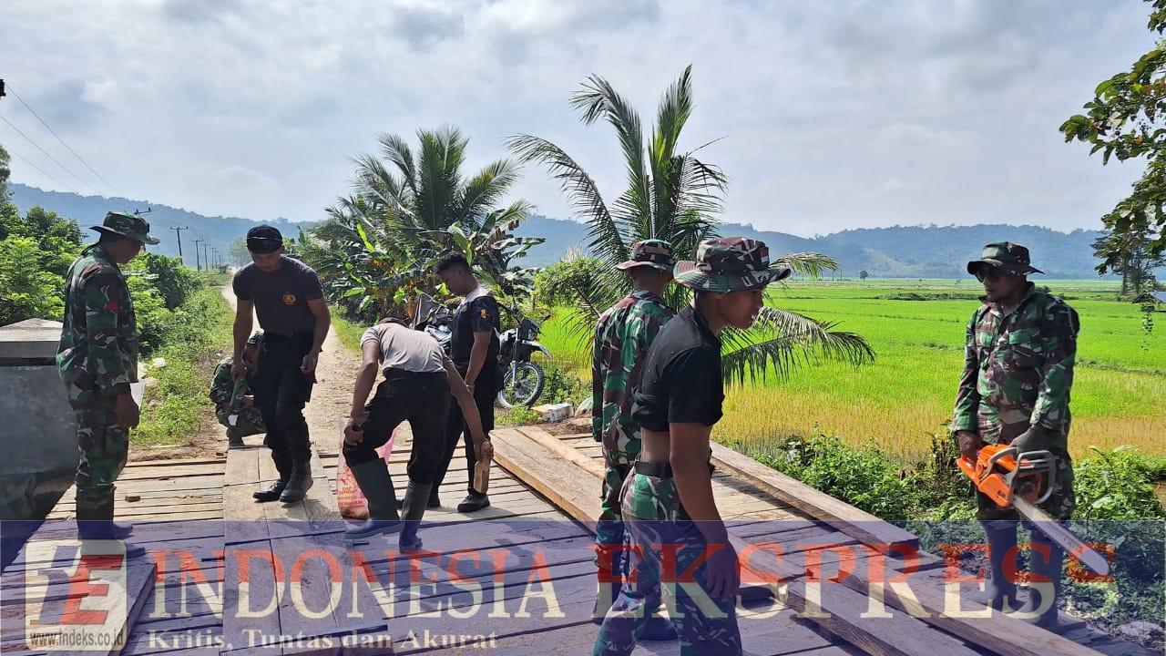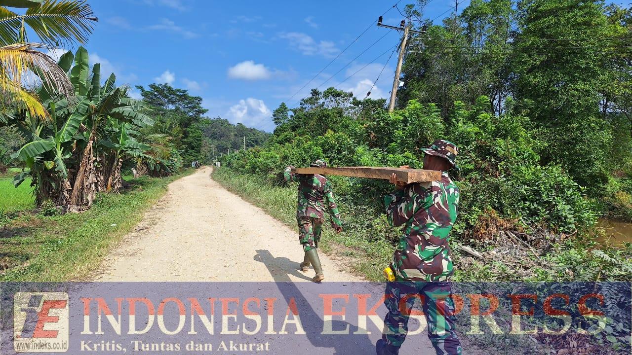 Konawe, INDEKS.co.id – Personel TNI dan Polri yang tergabung dalam Satuan Tugas (Satgas) TNI Manunggal Membangun Desa (TMMD) ke-125 Kodim 1417/Kendari melanjutkan pengerjaan pembangunan jembatan dengan memasang papan roda di Desa Awua Jaya, Kecamatan Asinua, Kabupaten Konawe, Selasa (29/7/2025).