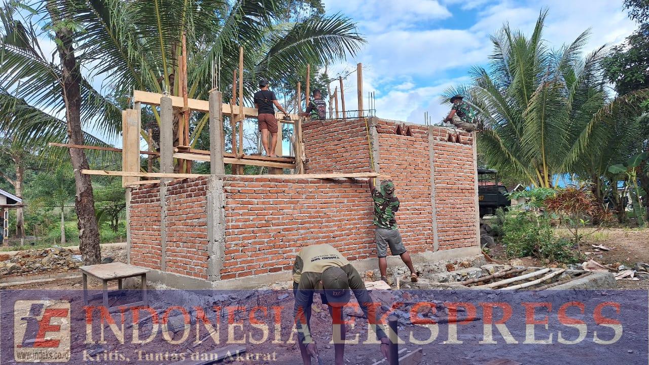 Komandan Satuan Setingkat Peleton (Dan SST) Lettu Inf Iswari menjelaskan, hari ini personel fokus pada pemasangan papan untuk sloof atas dan melanjutkan pembangunan tiang sebelum masuk ke tahap pengecoran.