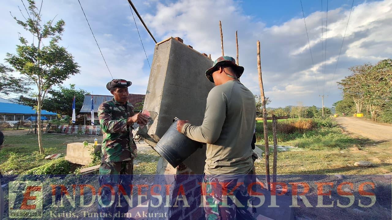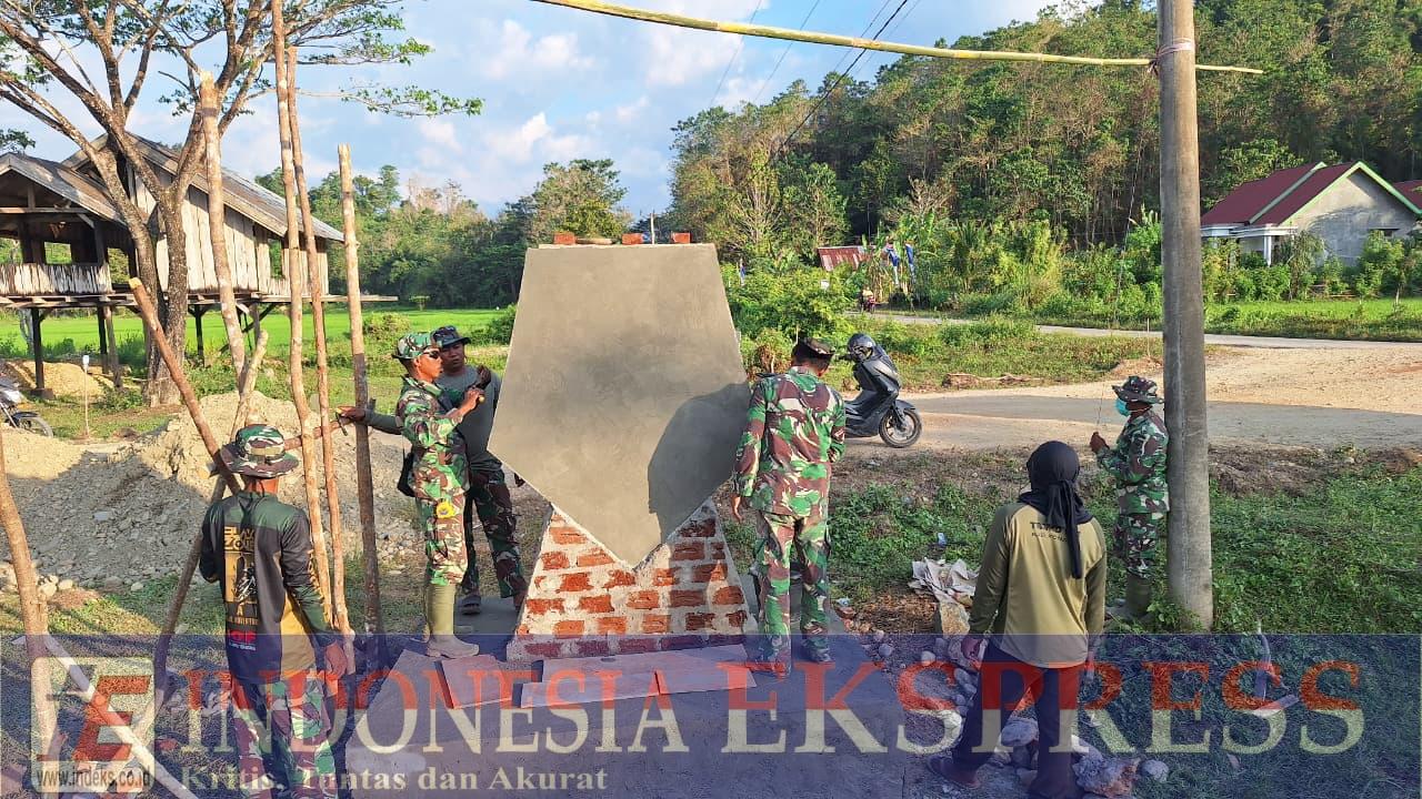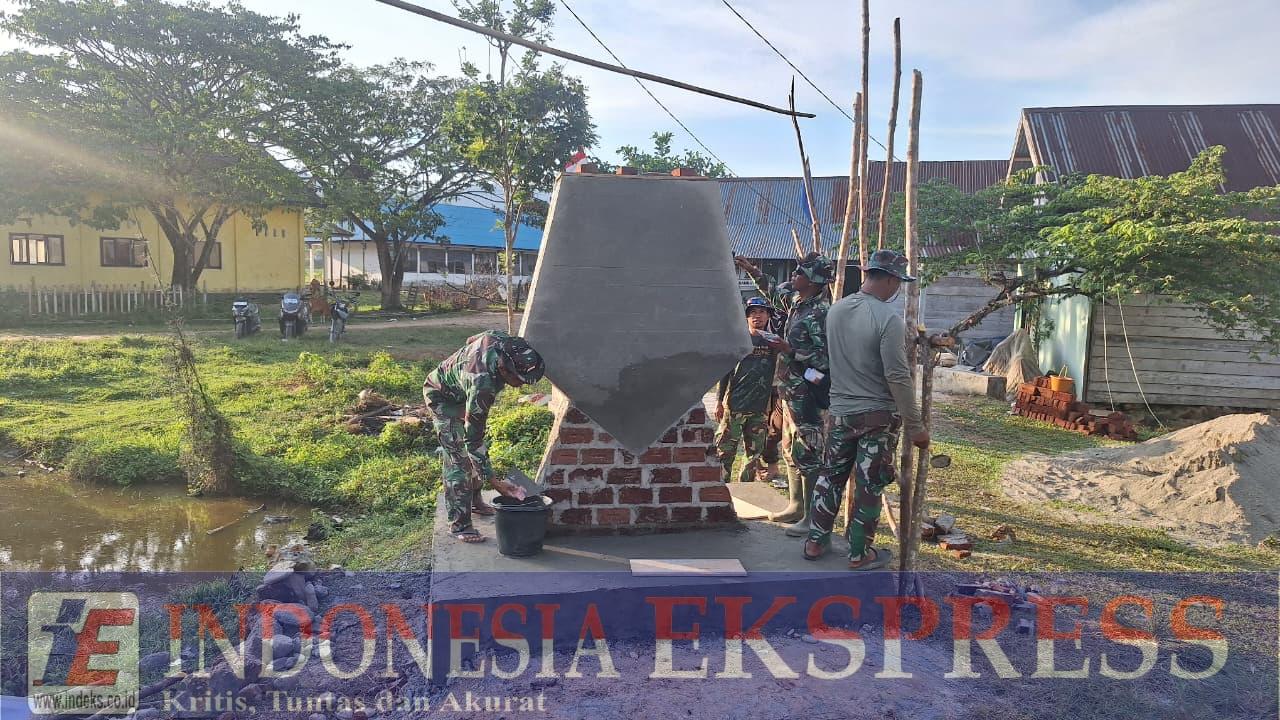 Puluhan anggota Satgas TMMD bahu-membahu mengerjakan detail demi detail, memastikan setiap sudut tugu sempurna. Pengerjaan dilakukan dengan ketelitian tinggi agar monumen ini tak hanya kokoh, tetapi juga memiliki nilai estetika yang membanggakan.