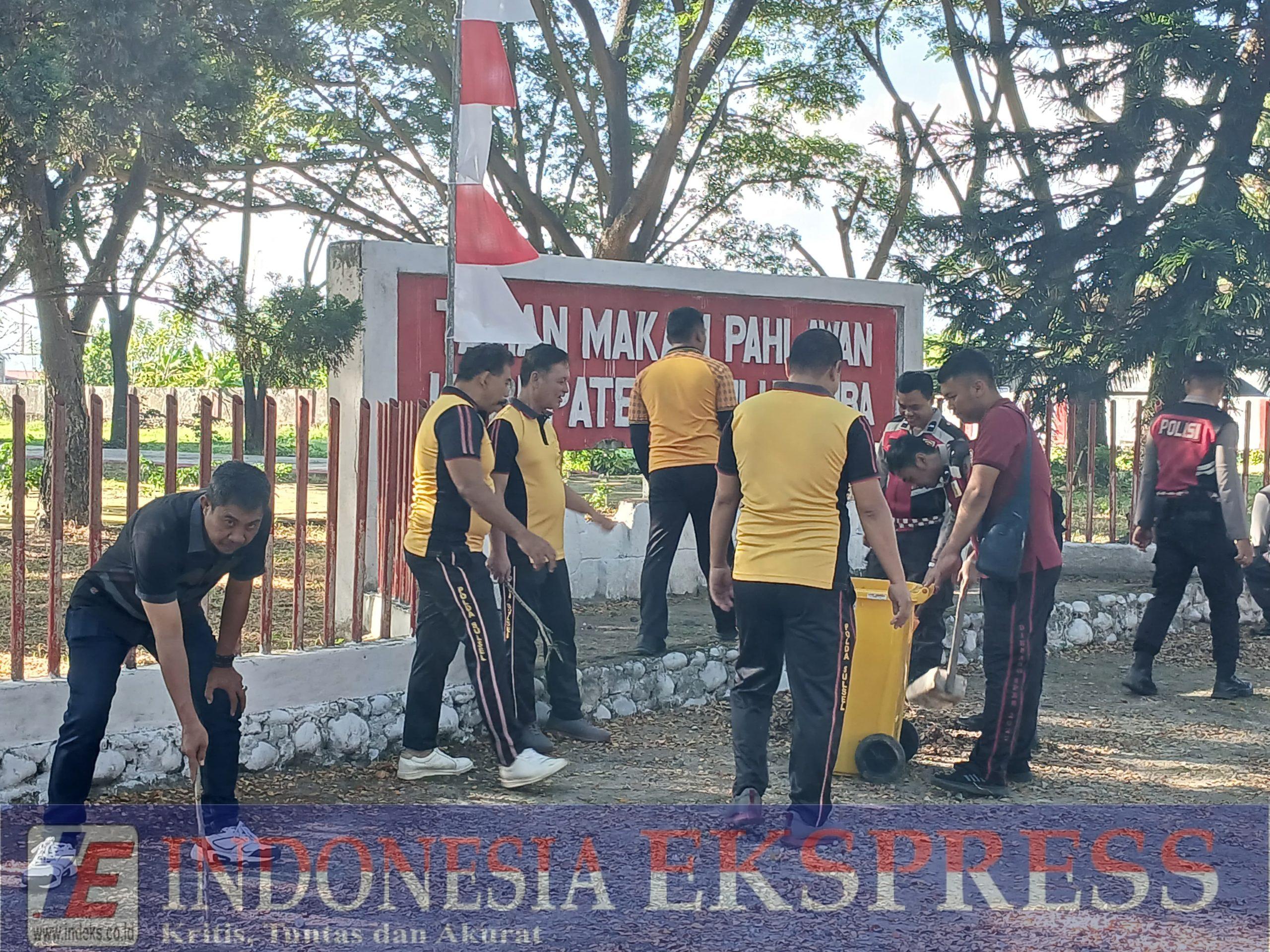 BULUKUMBA, INDEKS.co.id – Sebagai wujud penghargaan dan rasa cinta kepada para pahlawan, Polres Bulukumba melaksanakan kegiatan korvey atau kerja bakti membersihkan area Taman Makam Pahlawan (TMP) Taccorong, Jumat (15/8/2025).Kegiatan ini digelar usai apel pagi dan dipimpin langsung oleh Wakapolres Bulukumba, Kompol Syafaruddin, S.H. Seluruh personel yang terlibat bahu-membahu membersihkan area luar dan didalam makam, mulai dari menyapu daun dan ranting kering, membersihkan saluran air, hingga mengumpulkan sampah untuk kemudian diangkut oleh petugas kebersihan.Kompol Syafaruddin mengatakan, kegiatan ini bukan sekadar menjaga kebersihan, tetapi juga menjadi bentuk penghormatan terhadap jasa para pahlawan yang telah berjuang demi kemerdekaan.