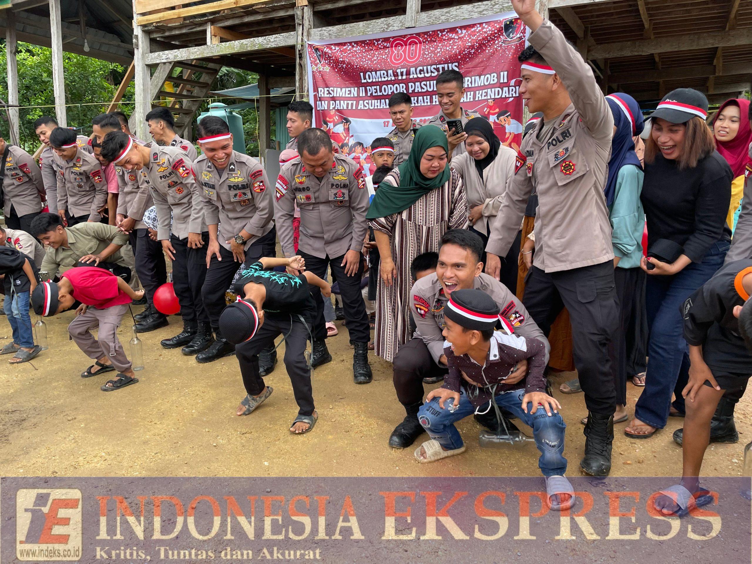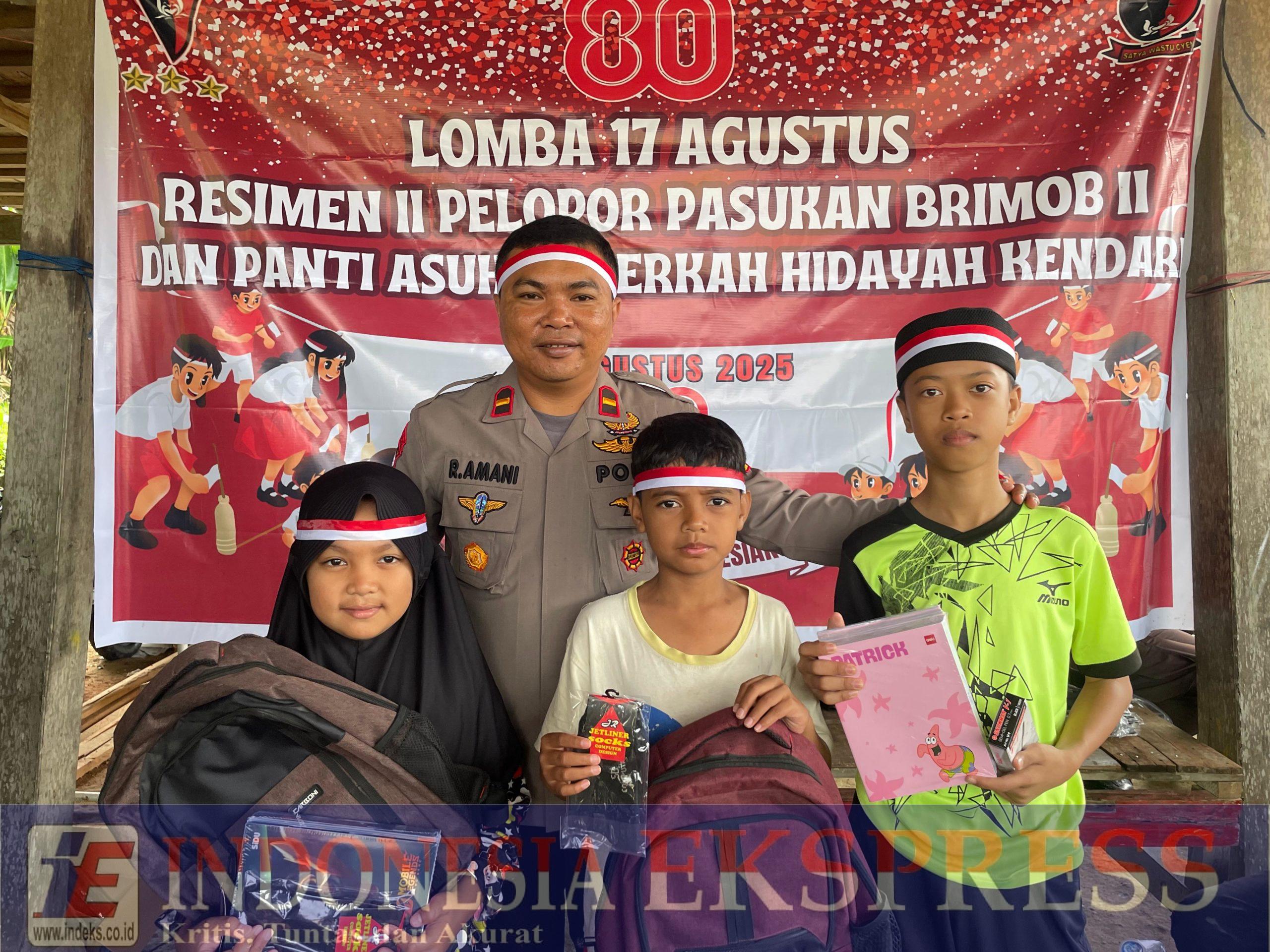Kendari, INDEKS.co.id – Resimen II Pelopor Pasbrimob II, satuan baru perwakilan Mabes Polri di Sulawesi Tenggara, memeriahkan HUT ke-80 Kemerdekaan RI dengan menggelar lomba bersama anak-anak Panti Asuhan Berkah Hidayah, Yayasan Nur Atika Islamyah, Senin (18/8/2025).