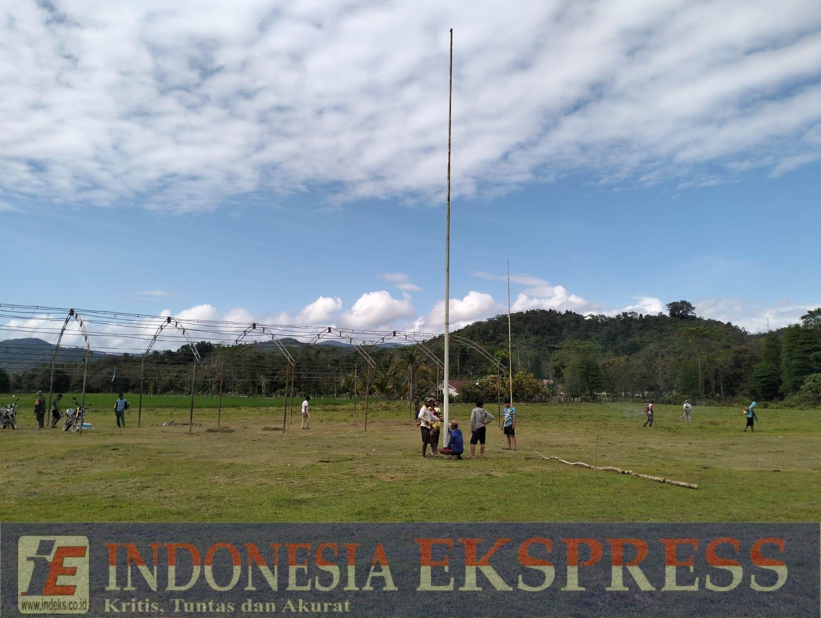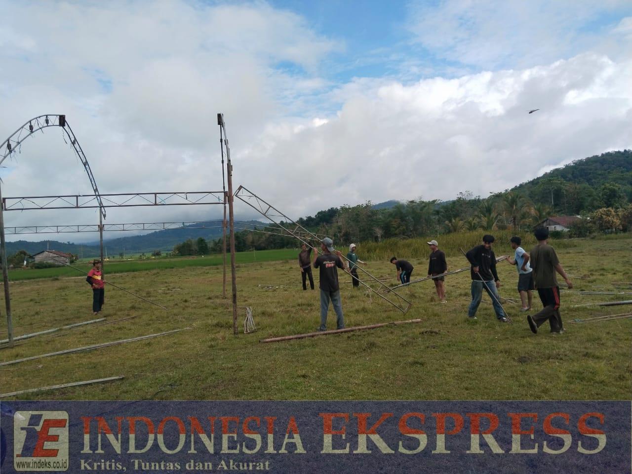 Selain pembersihan lapangan, Satgas dan warga juga mendirikan tenda untuk kenyamanan para tamu serta elemen masyarakat yang hadir.