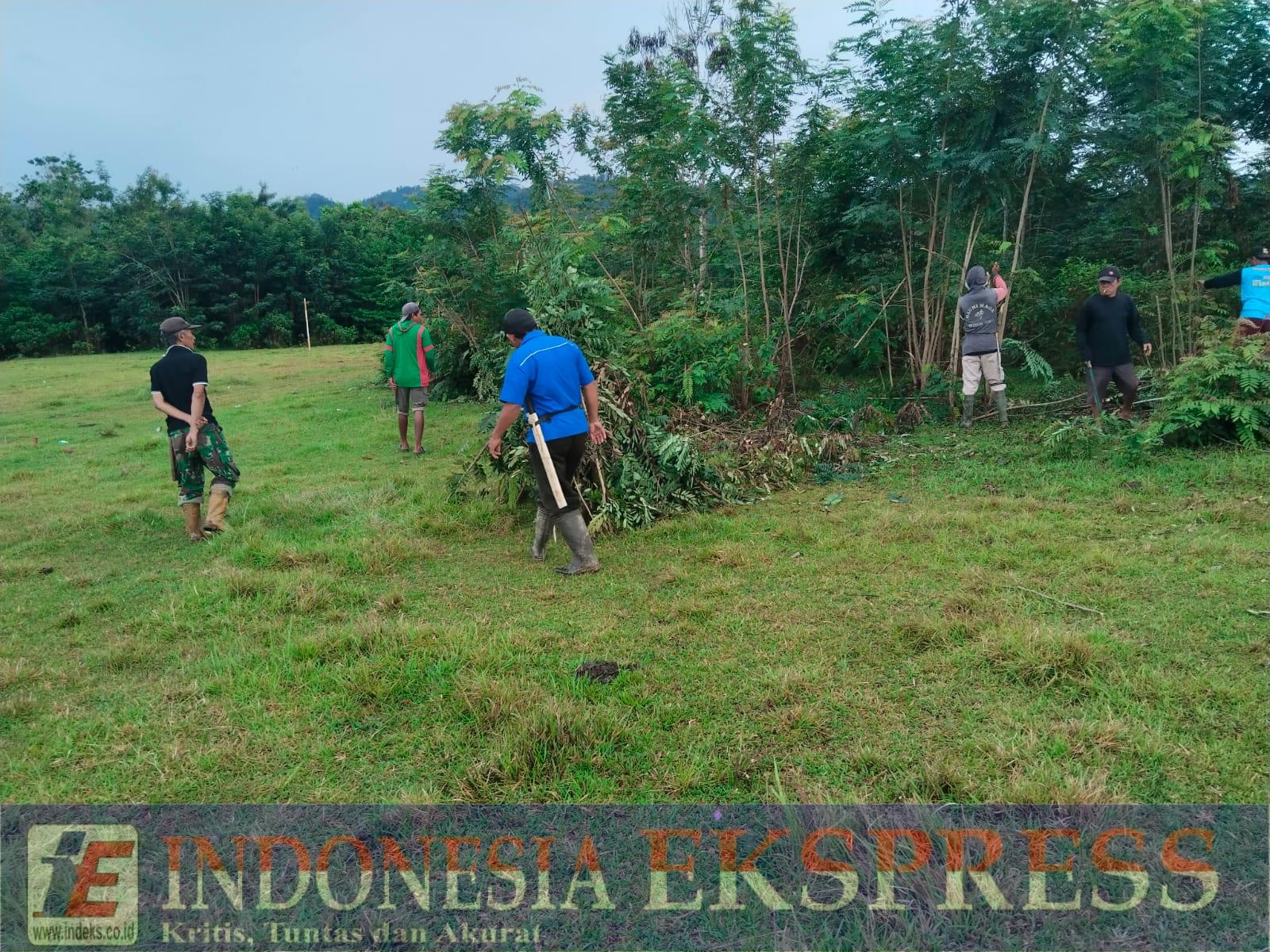 Lapangan tersebut akan menjadi lokasi utama upacara penutupan TMMD pada Kamis, 21 Agustus 2025. Terlihat anggota Satgas bersama warga bahu membahu menyiapkan area agar pelaksanaan kegiatan berjalan lancar.