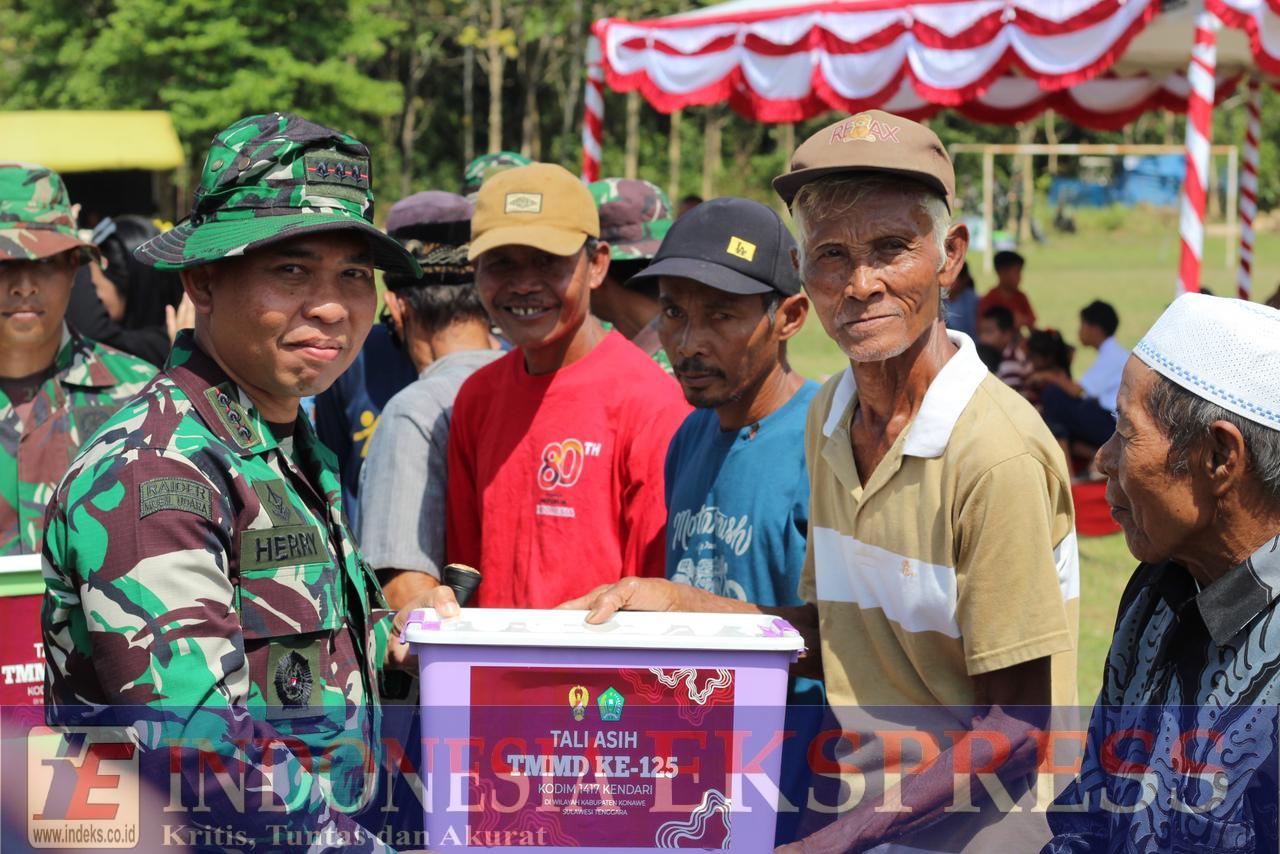 Konawe, INDEKS.co.id – Usai penutupan TNI Manunggal Membangun Desa (TMMD) ke-125, Kodim 1417/Kendari kembali menunjukkan kepeduliannya kepada masyarakat Kecamatan Asinua, Kabupaten Konawe. Sebanyak 200 paket sembako disalurkan kepada warga kurang mampu sebagai bentuk tali asih.Komandan Satgas TMMD, Kolonel Inf Herry Indriyanto, dalam keterangannya Kamis (21/8/2025), mengatakan bahwa kegiatan tersebut merupakan bagian tambahan dari acara penutupan TMMD.