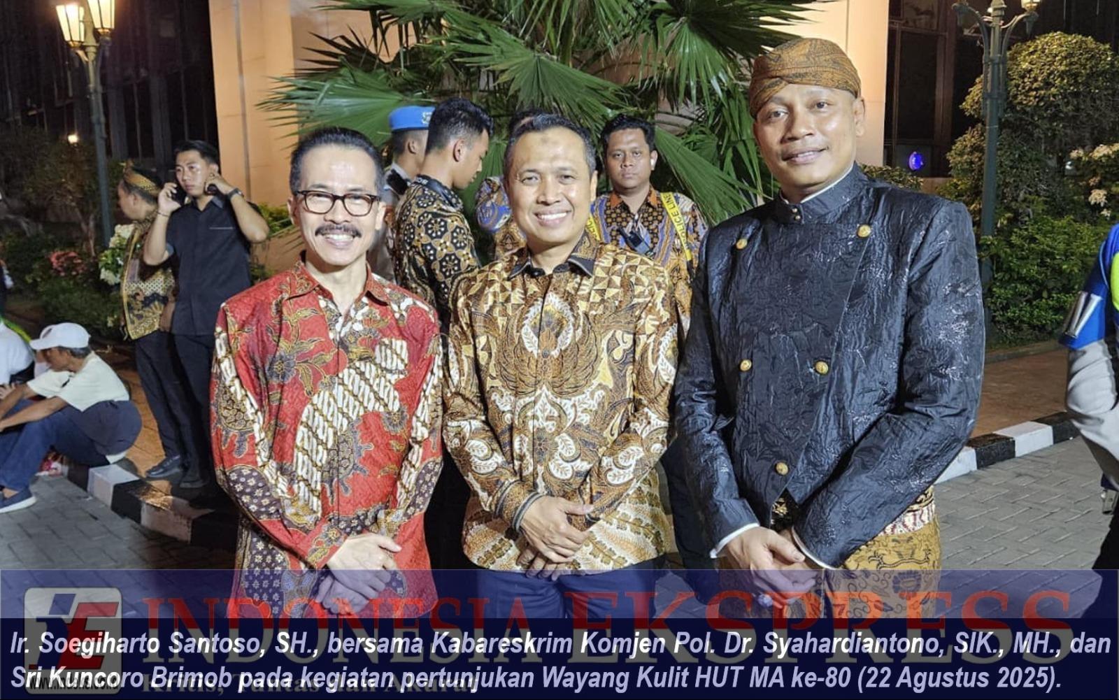 Jakarta, INDEKS.co.id — Dalam rangka memperingati Hari Ulang Tahun (HUT) ke-80, Mahkamah Agung (MA) RI menyelenggarakan pagelaran wayang kulit spektakuler “1 Layar 4 Dalang” dengan Lakon “Banjaran Kokrosono”, pada Jumat (22/8/2025) di Gedung Mahkamah Agung. Acara yang diikuti seluruh satuan kerja peradilan di Indonesia secara hybrid ini telah menjadi tradisi selama lima tahun terakhir.