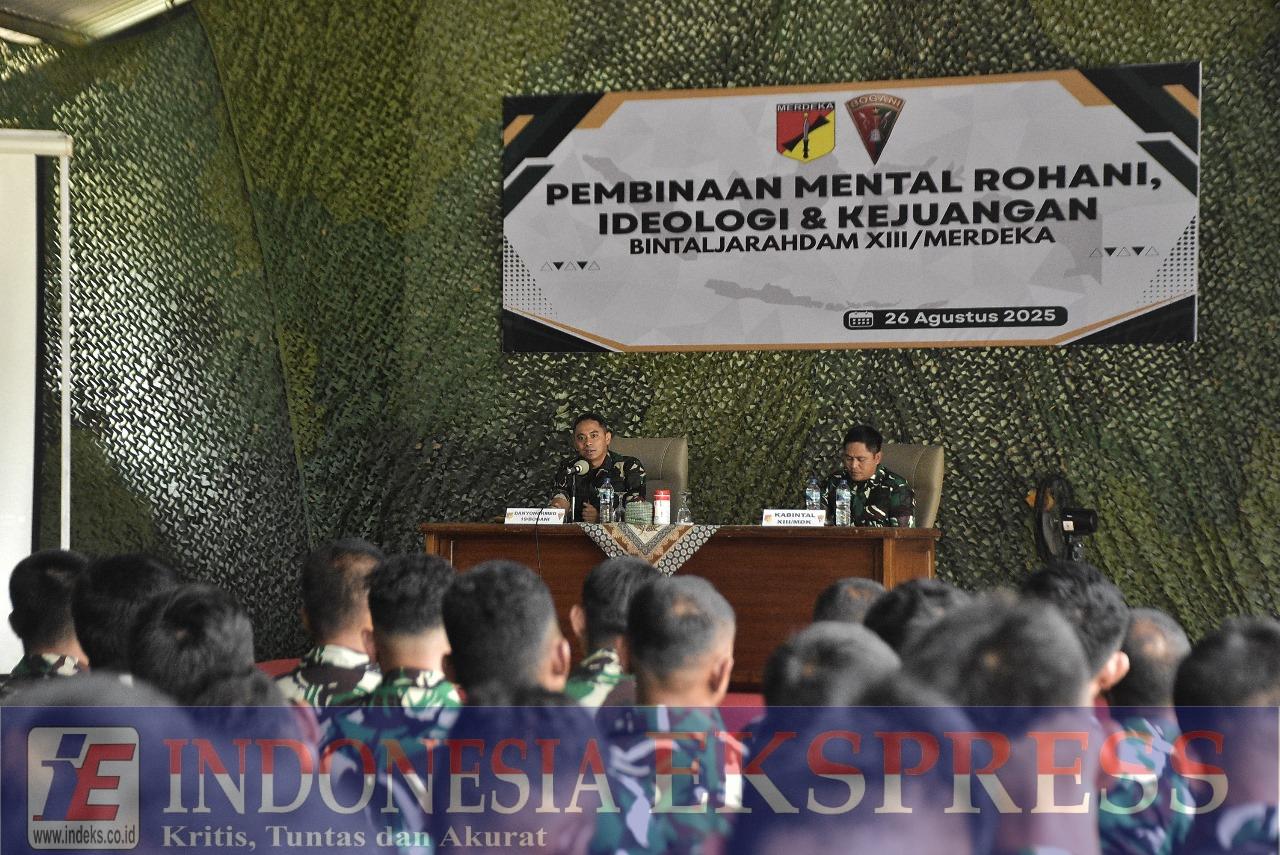 Lolak, INDEKS.co.id – Dalam rangka meningkatkan kualitas mental, ideologi, dan semangat juang Prajurit, Badan Pembinaan Mental dan Sejarah Kodam (Bintaljarahdam) XIII/Merdeka menggelar kegiatan Pembinaan Mental Rohani, Ideologi, dan Kejuangan di Yon Armed 19/Bogani, bertempat di Aula Mayo Armed 19, jalan Trans Sulawesi lolak, Bolmong. Selasa, (26/8/2025).