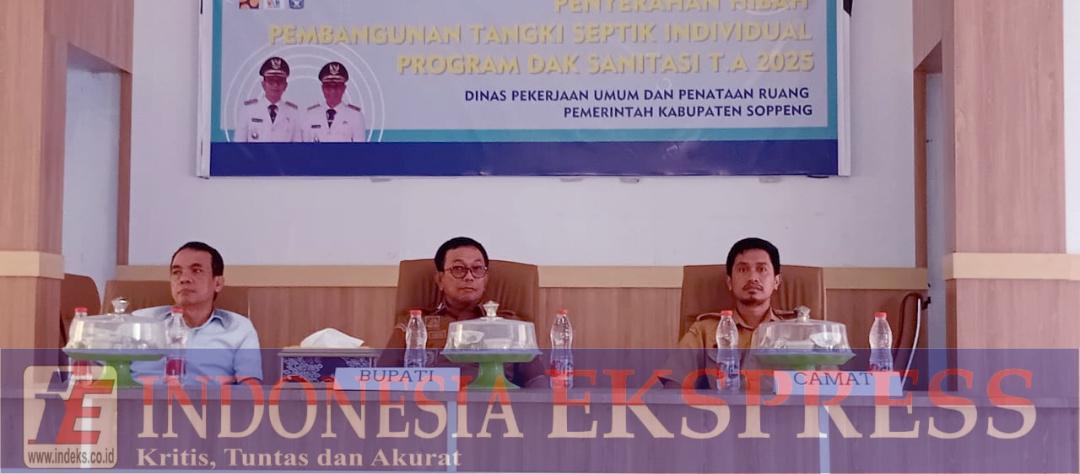 INDEKS.CO.ID, SOPPENG — Bupati Soppeng, H. Suwardi Haseng, S.E., secara langsung menyerahkan bantuan tangki septik skala individual di Aula Kantor Camat Marioriwawo pada Selasa, 2 September 2025.