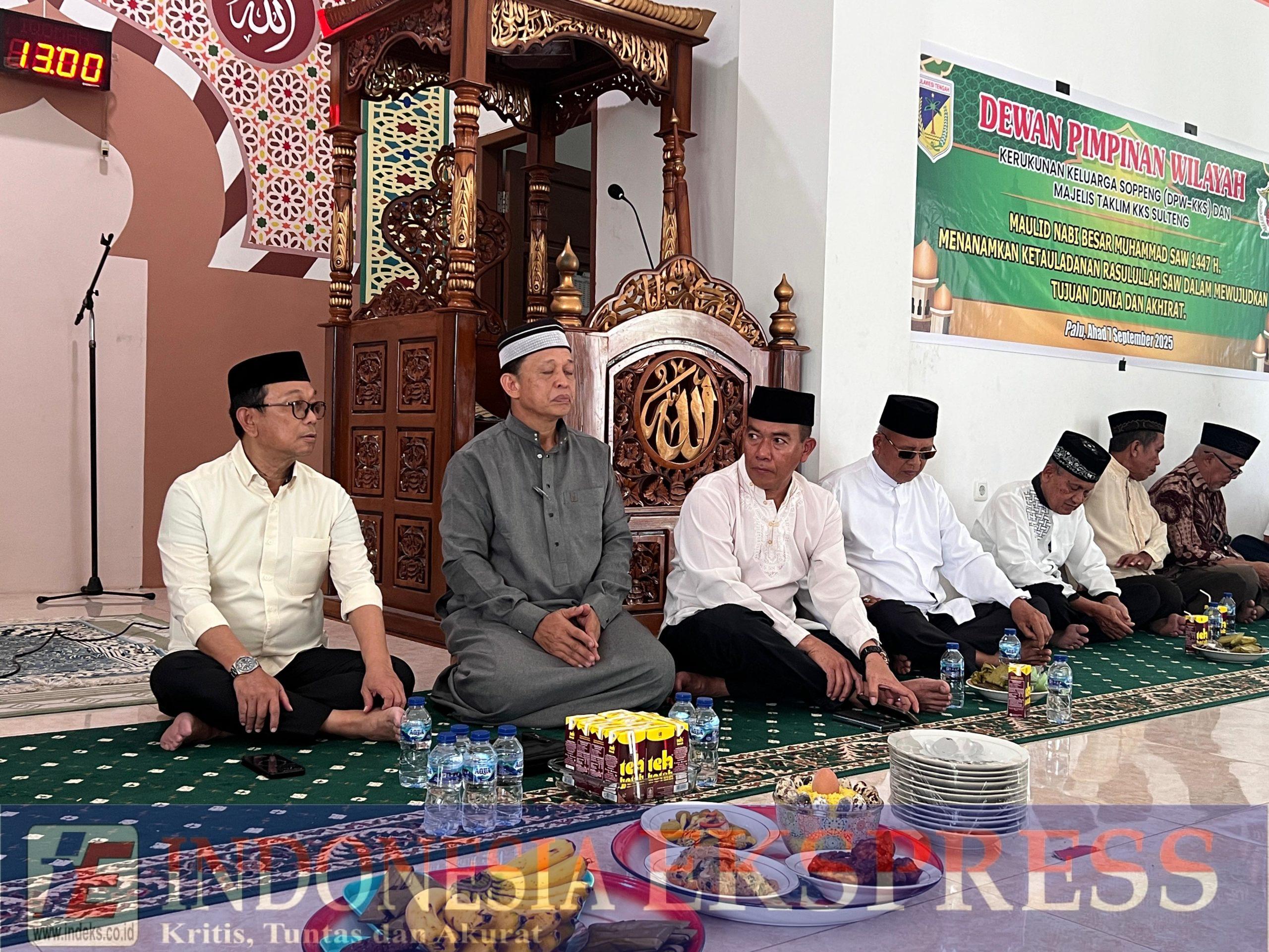 PALU, INDEKS.CO.ID – Bupati Soppeng, H. Suwardi Haseng, S.E., menghadiri peringatan Maulid Nabi Muhammad S.A.W 1447 Hijriah/2025 Masehi yang diselenggarakan oleh Kerukunan Keluarga Soppeng (KKS) Provinsi Sulawesi Tengah bekerja sama dengan Majelis Taklim KKS. Acara penuh kehangatan ini berlangsung di Masjid Transmigrasi, Jalan Kartini, Palu, pada Ahad (7/9/2025).