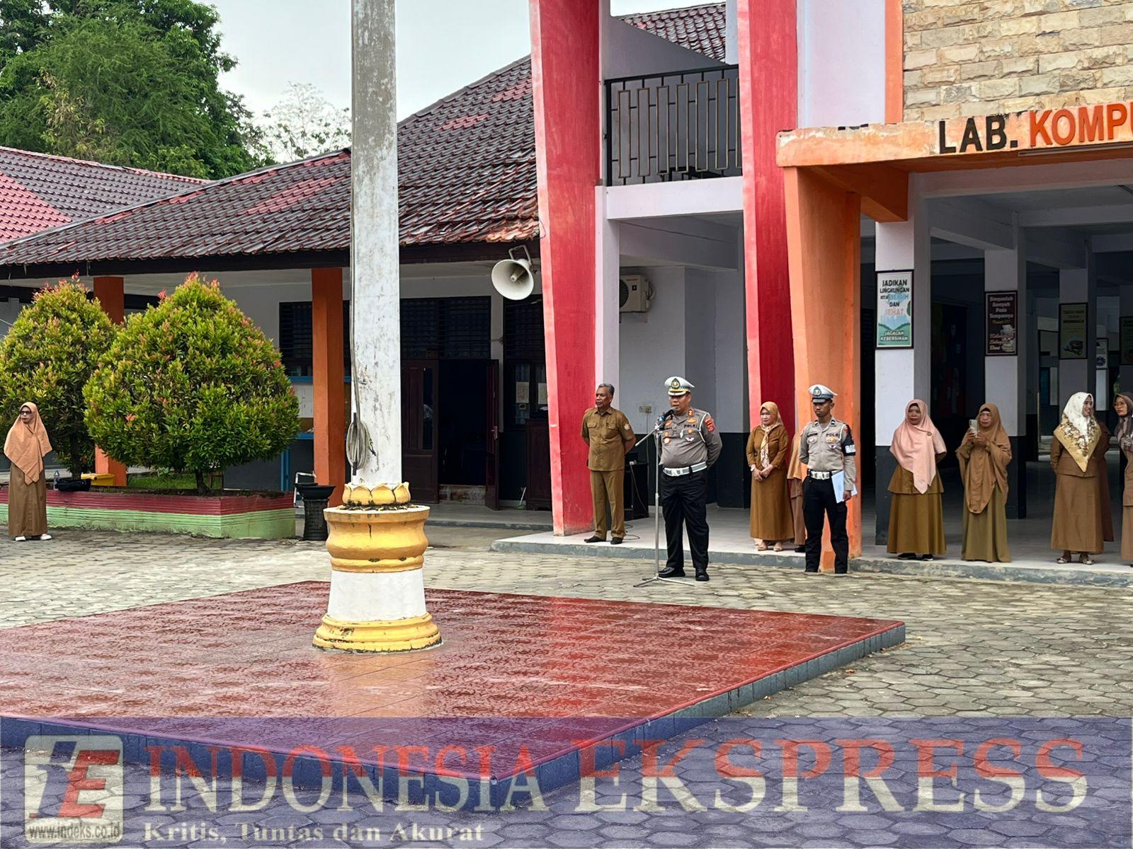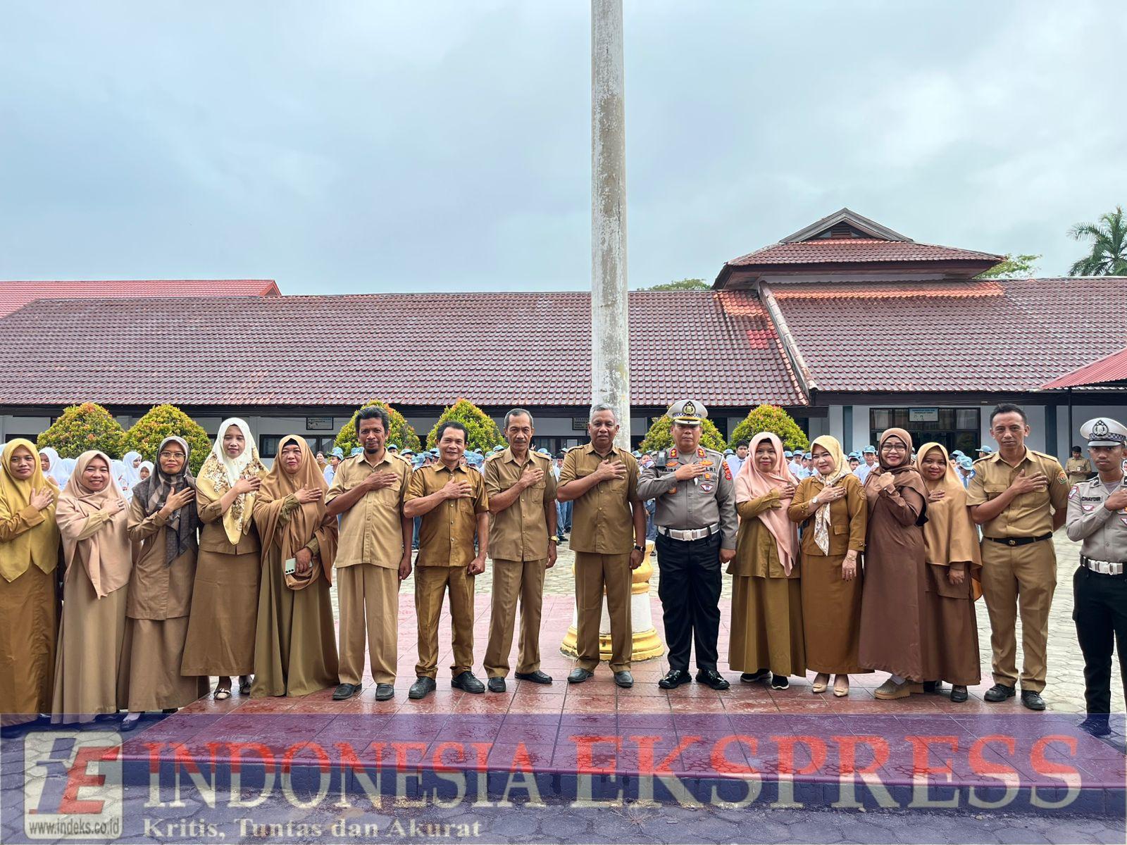 Foto : AKBP Faisal, S.Sos, selaku Kepala Sub Direktorat Penegakan Hukum (Kasubdit Gakkum) Ditlantas Polda Sultra, menjadi inspektur upacara (Irup) di Sekolah Menengah Kejuruan Negeri (SMKN) 1 Kendari. (Doc.Ist)