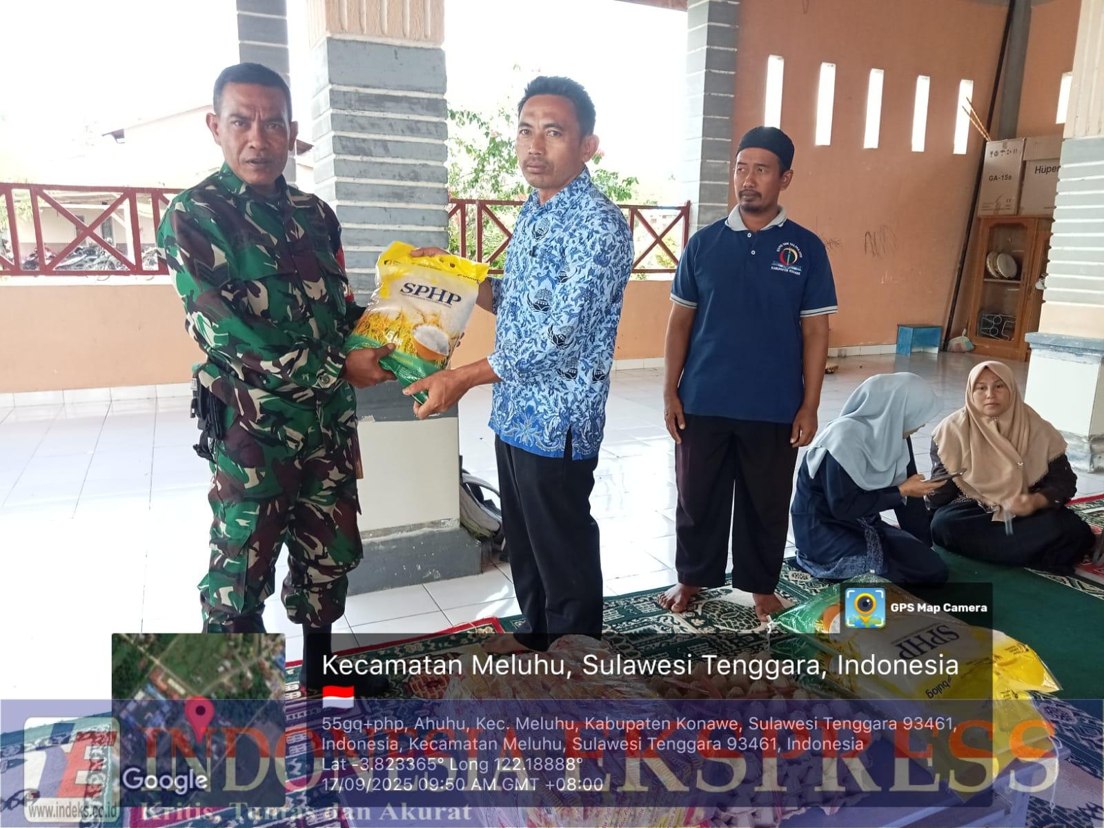Kegiatan ini dipimpin langsung oleh Danpos Kecamatan Meluhu, Serka Rauf, yang hadir mewakili Danramil 1417-02/Wawotobi. Penyaluran bantuan berlangsung di Desa Ahuhu, Kecamatan Meluhu, Kabupaten Konawe, Sulawesi Tenggara.