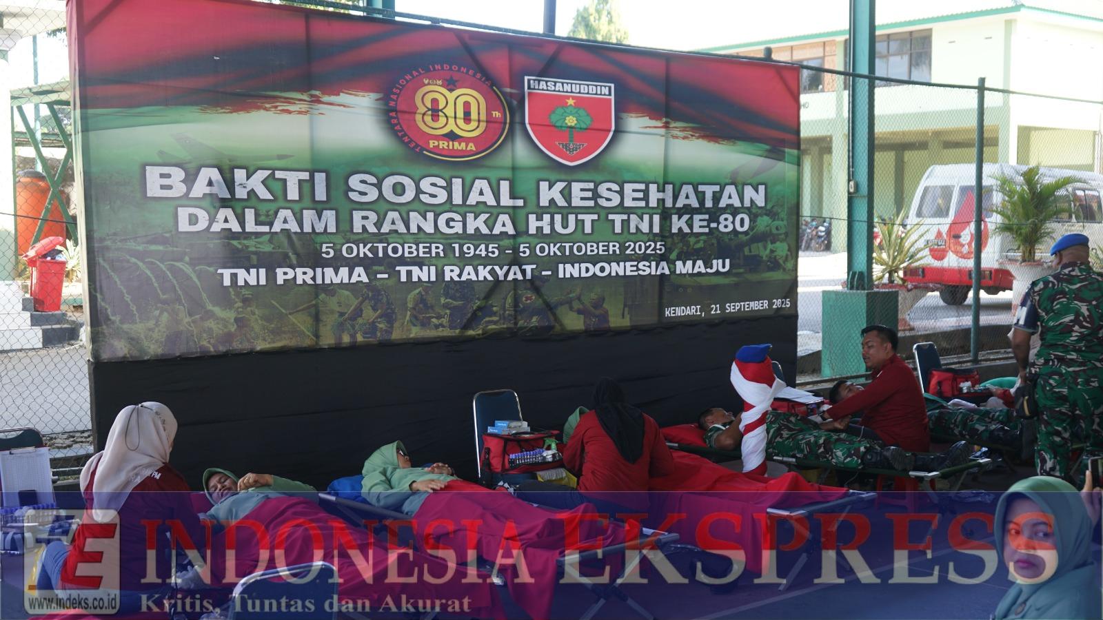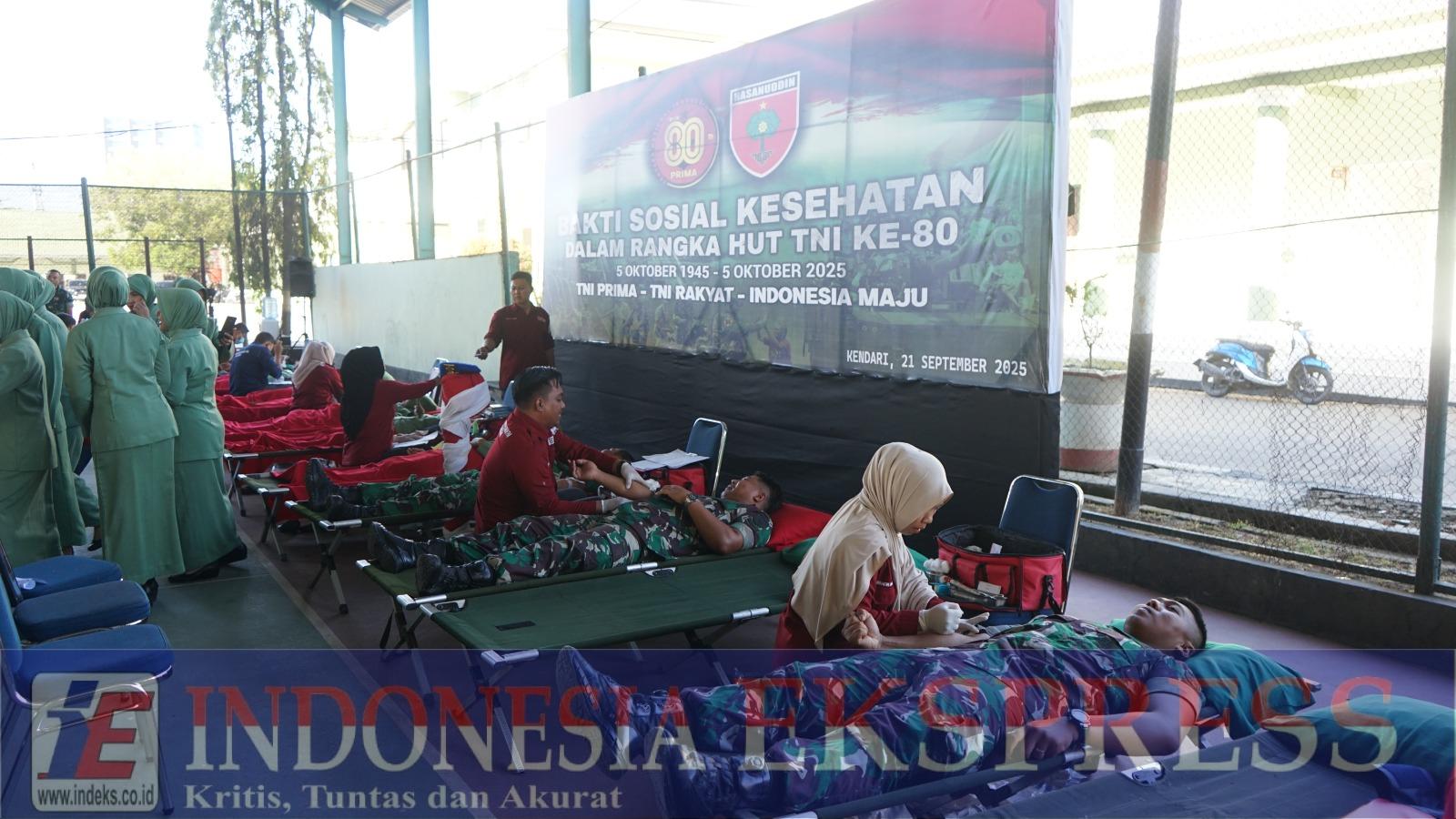 KENDARI, INDEKS.co.id – Dalam rangka menyambut Hari Ulang Tahun (HUT) Tentara Nasional Indoensia (TNI) ke-80 tahun 2025, Korem 143/HO menggelar pengobatan gratis dan donor darah di Lapangan tenis Korem 143/HO.