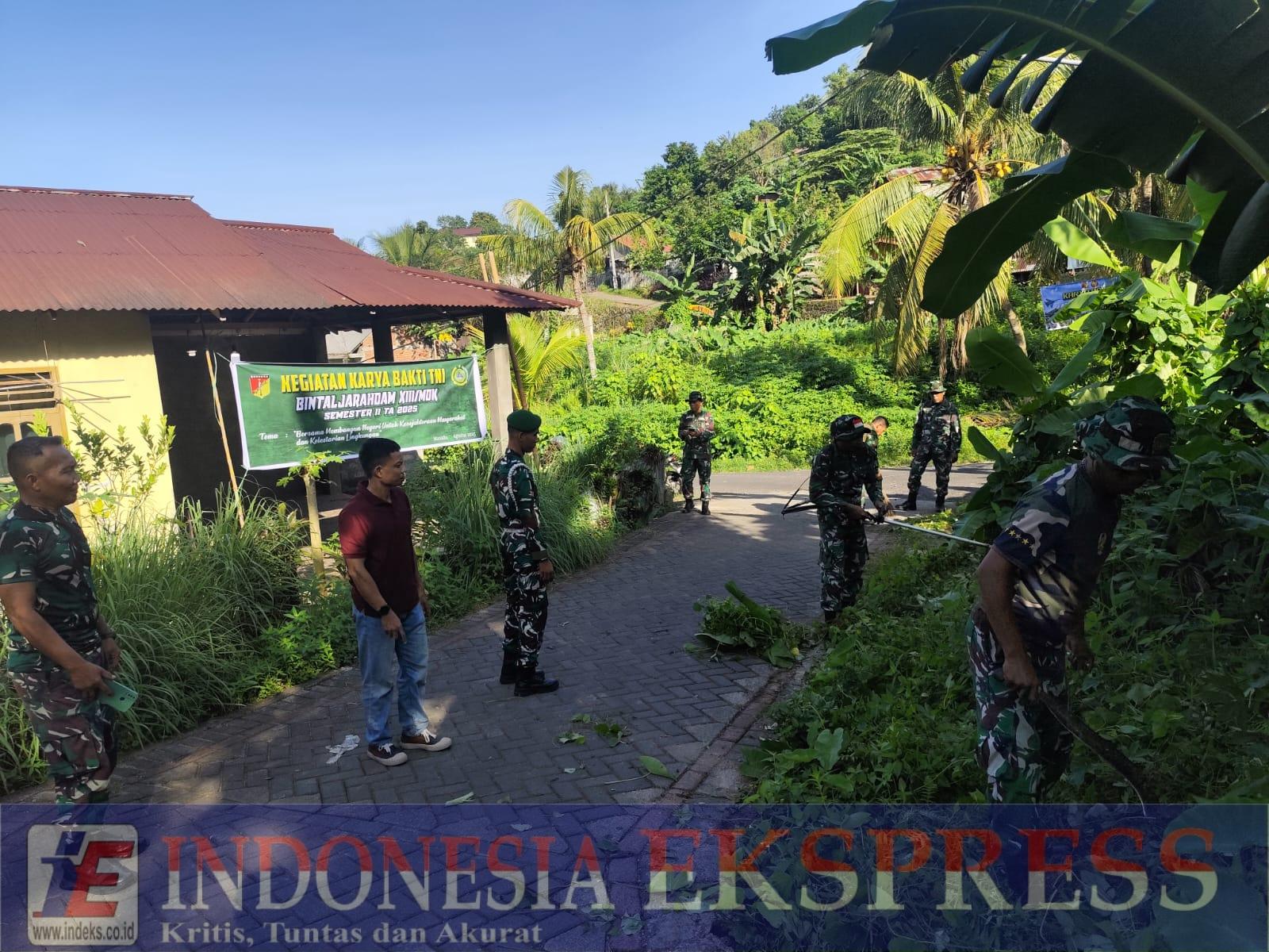 MANADO, INDEKS.co.id — Bintaljarahdam XIII/Merdeka melaksanakan Karya Bakti, Aksi Pembinaan Teritorial satuan non Komando Kewilayahan (Satnonkowil) yang dipimpin langsung oleh Kabintaljarahdam XIII/Merdeka, Kolonel Inf Syarifuddin.S.Ag.,M.I.Pol., Kegiatan ini berlangsung di Buminyiur lingkungan 3 kec Wanea Kota Manado ,Sulut. jum’at, (26/9/2025).