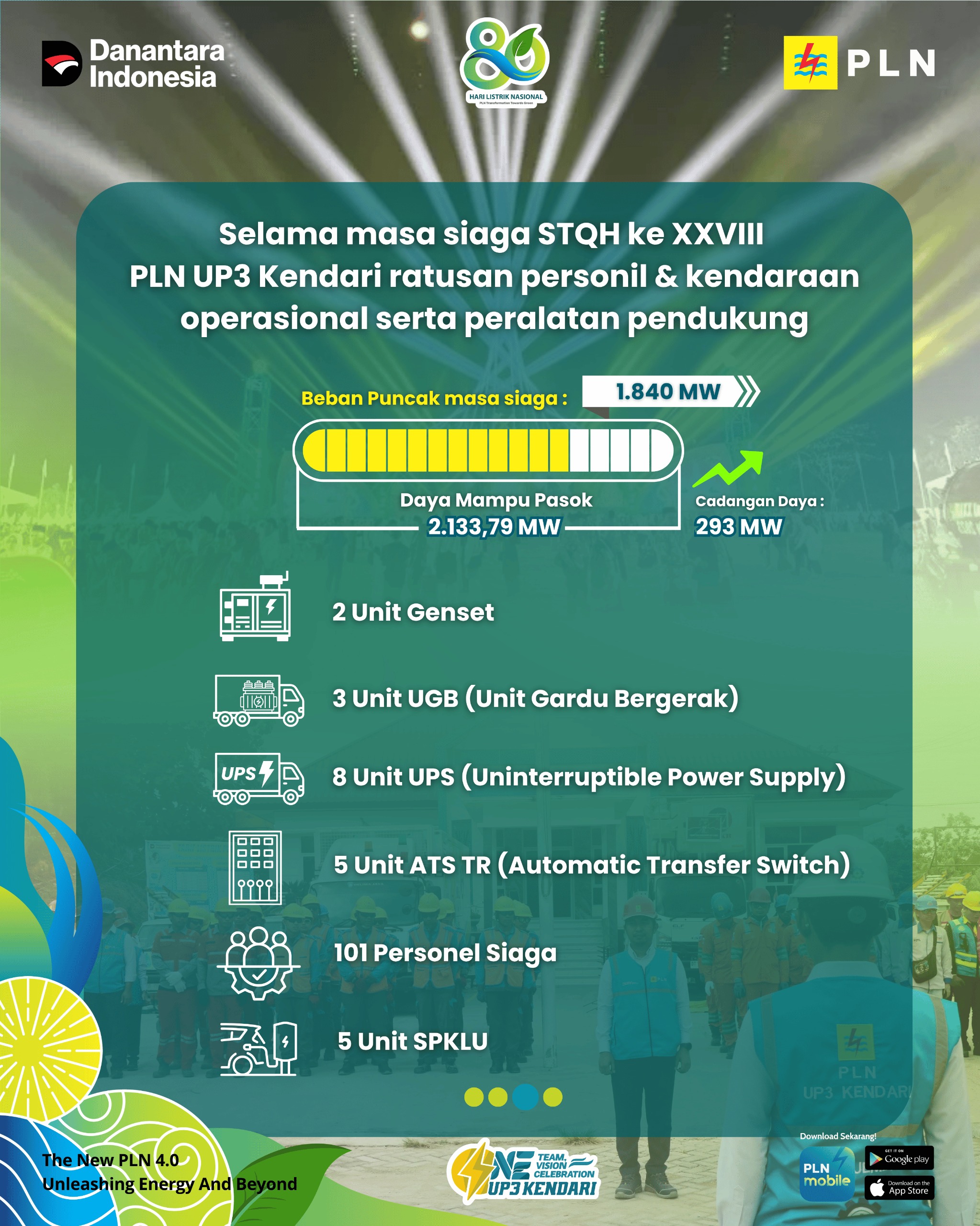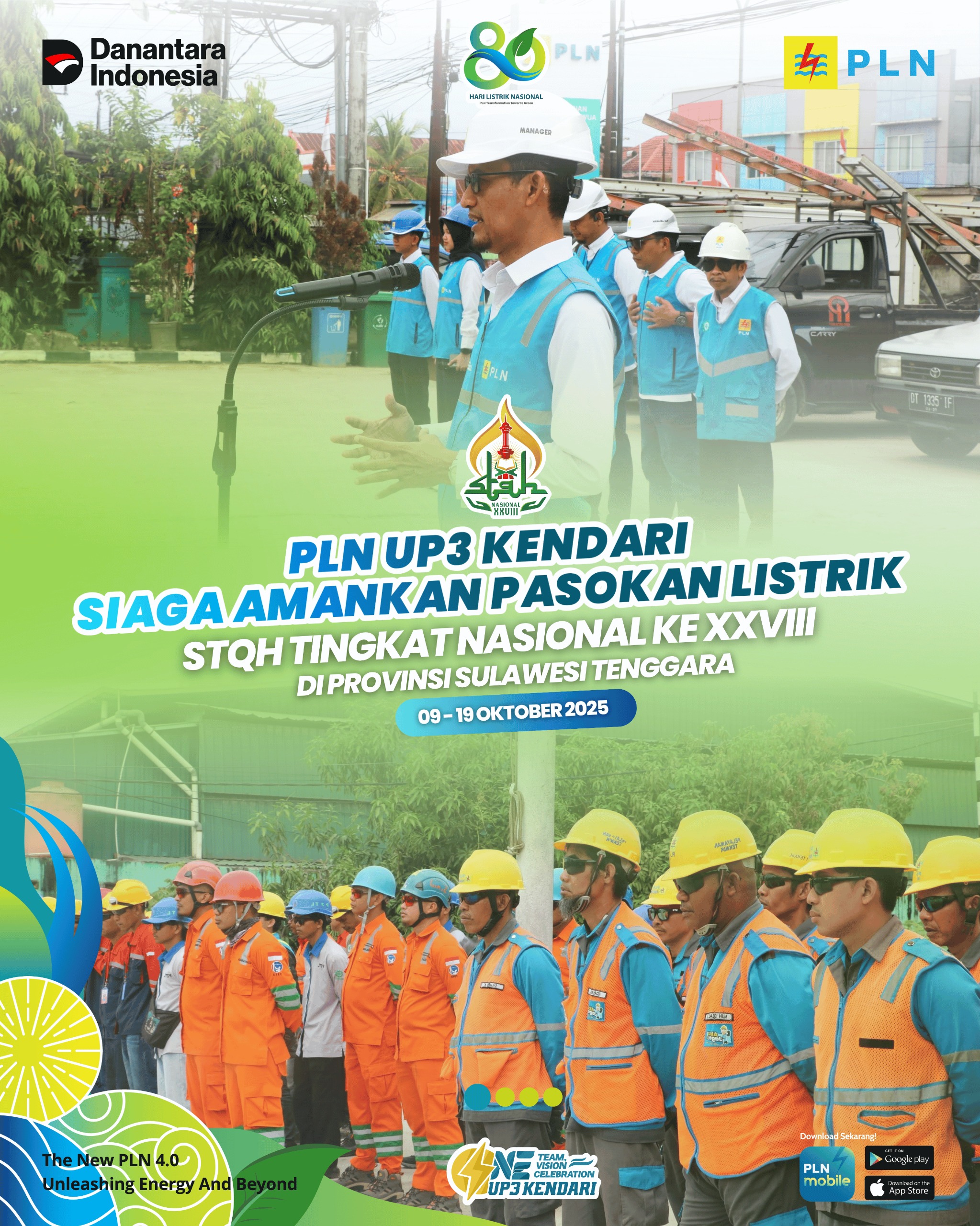 KENDARI, INDEKS.co.id | 06 Oktober 2025 – Dalam rangka mendukung suksesnya pelaksanaan Seleksi Tilawatil Qur’an dan Hadits (STQH) Tingkat Nasional XXVIII Tahun 2025 yang digelar di Provinsi Sulawesi Tenggara, PLN UP3 Kendari menyiapkan strategi pengamanan pasokan listrik secara maksimal.