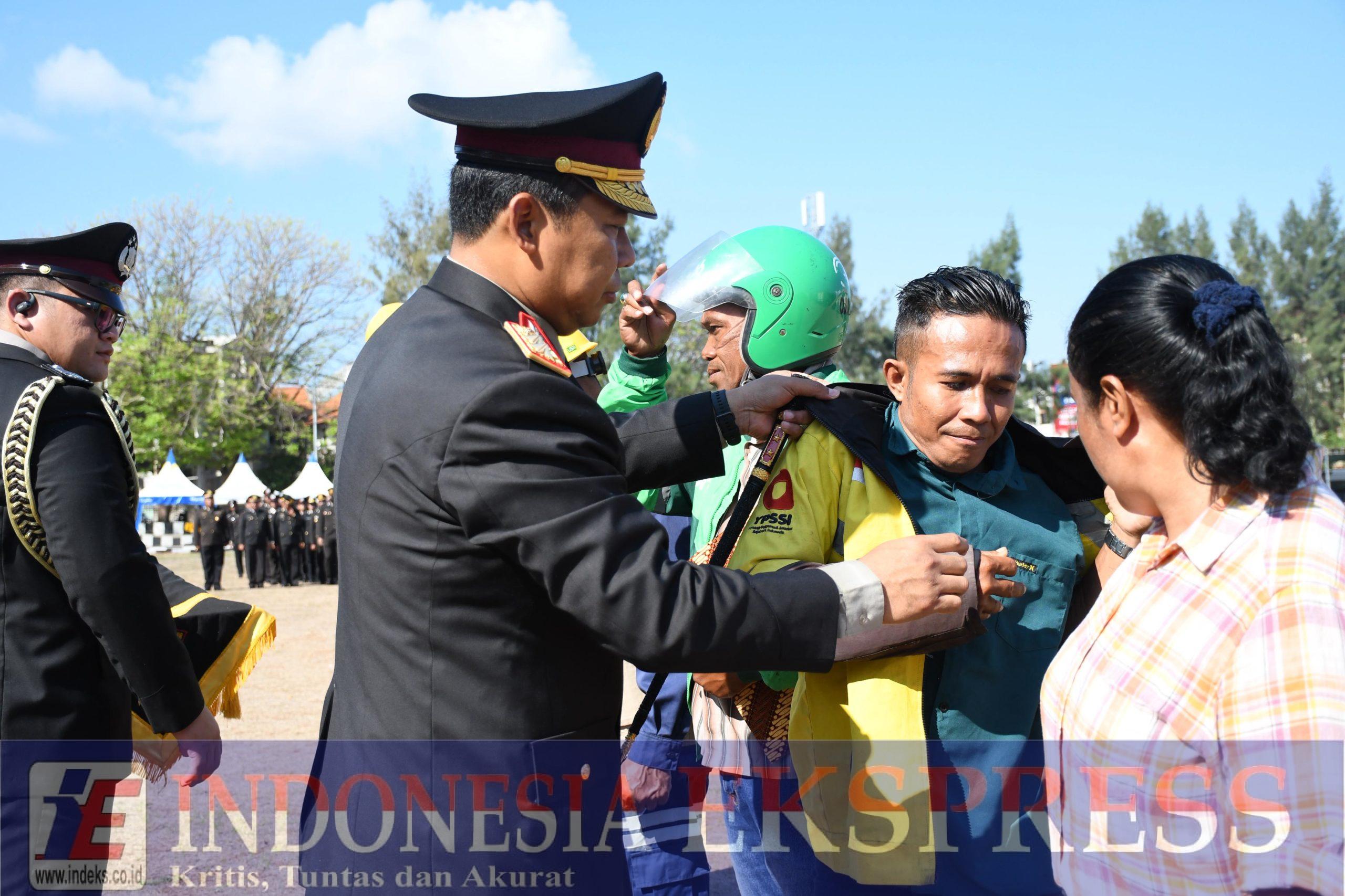 Dalam kesempatan tersebut, Kapolda NTT secara simbolis memakaikan rompi buruh dan helm Ojek Kamtibmas kepada perwakilan peserta sebagai bentuk dukungan Polri terhadap peran aktif mereka dalam menjaga keamanan dan ketertiban masyarakat. Selain itu, Kapolda juga menyerahkan bantuan sosial berupa paket sembako kepada para buruh dan pengemudi ojek online sebagai wujud kepedulian terhadap kesejahteraan masyarakat pekerja di NTT.