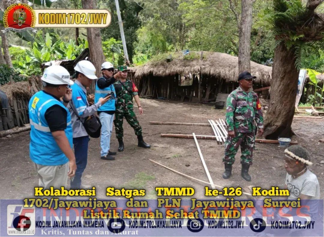 WAMENA, INDEKS.co.id — Satuan Tugas TNI Manunggal Membangun Desa (Satgas TMMD) ke-126 Kodim 1702/Jayawijaya menerima kunjungan dari tim Perusahaan Listrik Negara (PLN) Kabupaten Jayawijaya untuk melakukan survei instalasi listrik di lokasi pembangunan rumah sehat di Distrik Pyramid, Kabupaten Jayawijaya, Provinsi Papua Pegunungan, Rabu (29/10/2025).