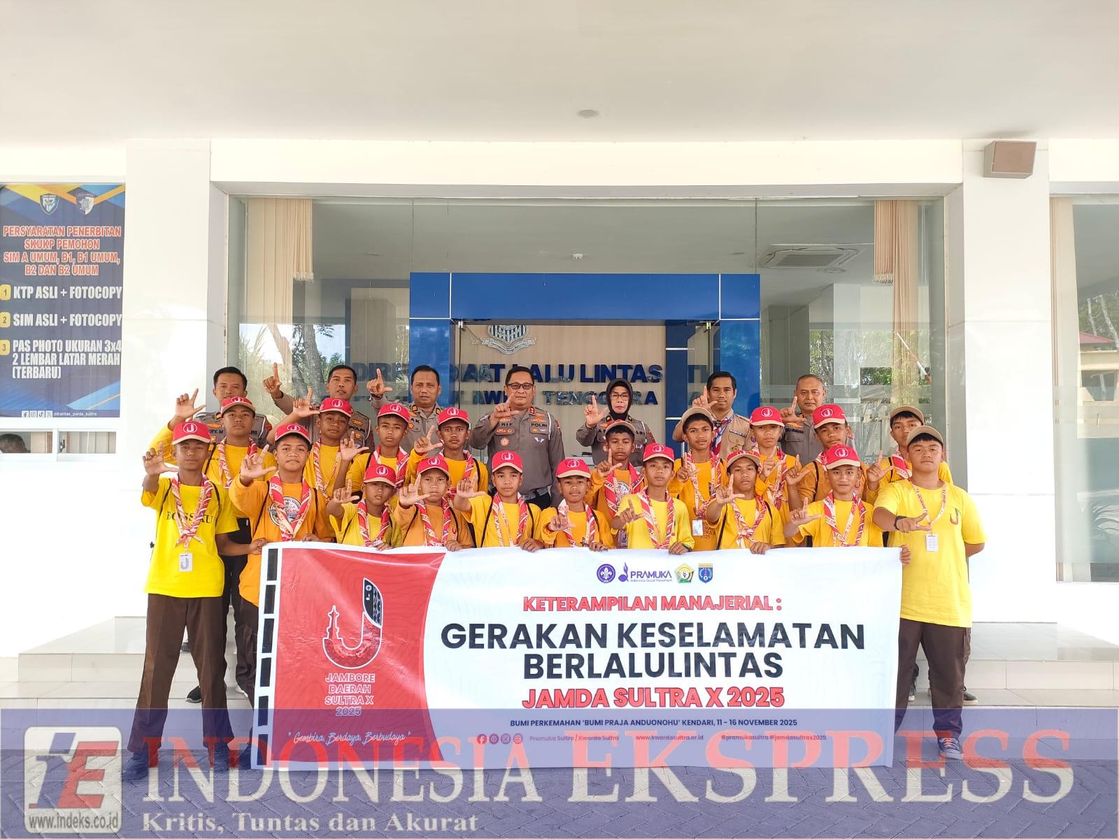 KENDARI, INDEKS.co.id — Direktorat Lalu Lintas (Ditlantas) Polda Sulawesi Tenggara terus berkomitmen membangun budaya tertib berlalu lintas sejak usia dini. Komitmen tersebut diwujudkan melalui kegiatan edukatif bertajuk Sosialisasi Keselamatan Berlalu Lintas bagi peserta Jambore Daerah (Jamda) Gerakan Pramuka Sultra ke-X Tahun 2025.