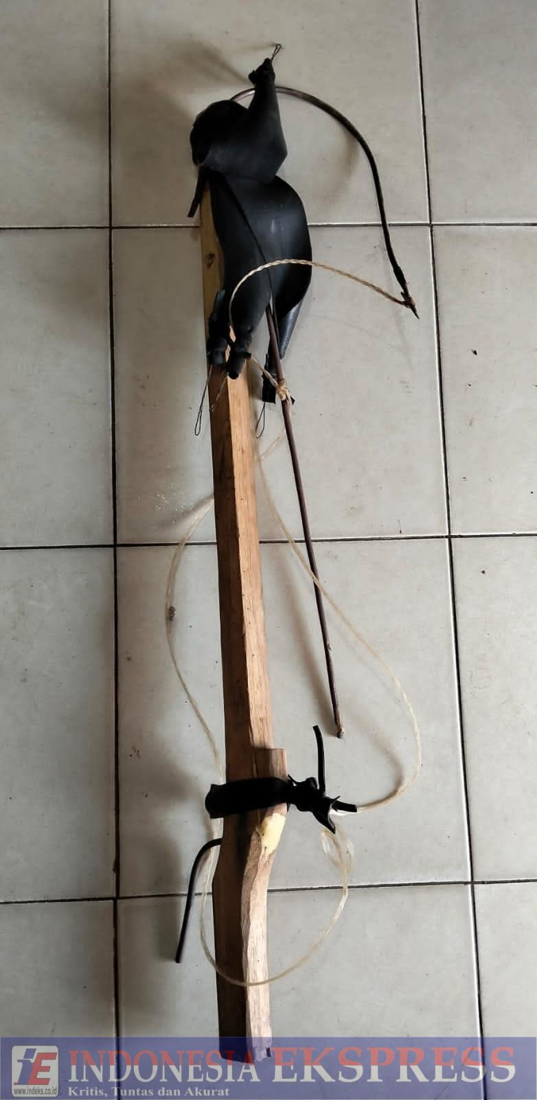 Barang bukti panah ikan yang digunakan dalam aksi penganiayaan tersebut juga berhasil diamankan.