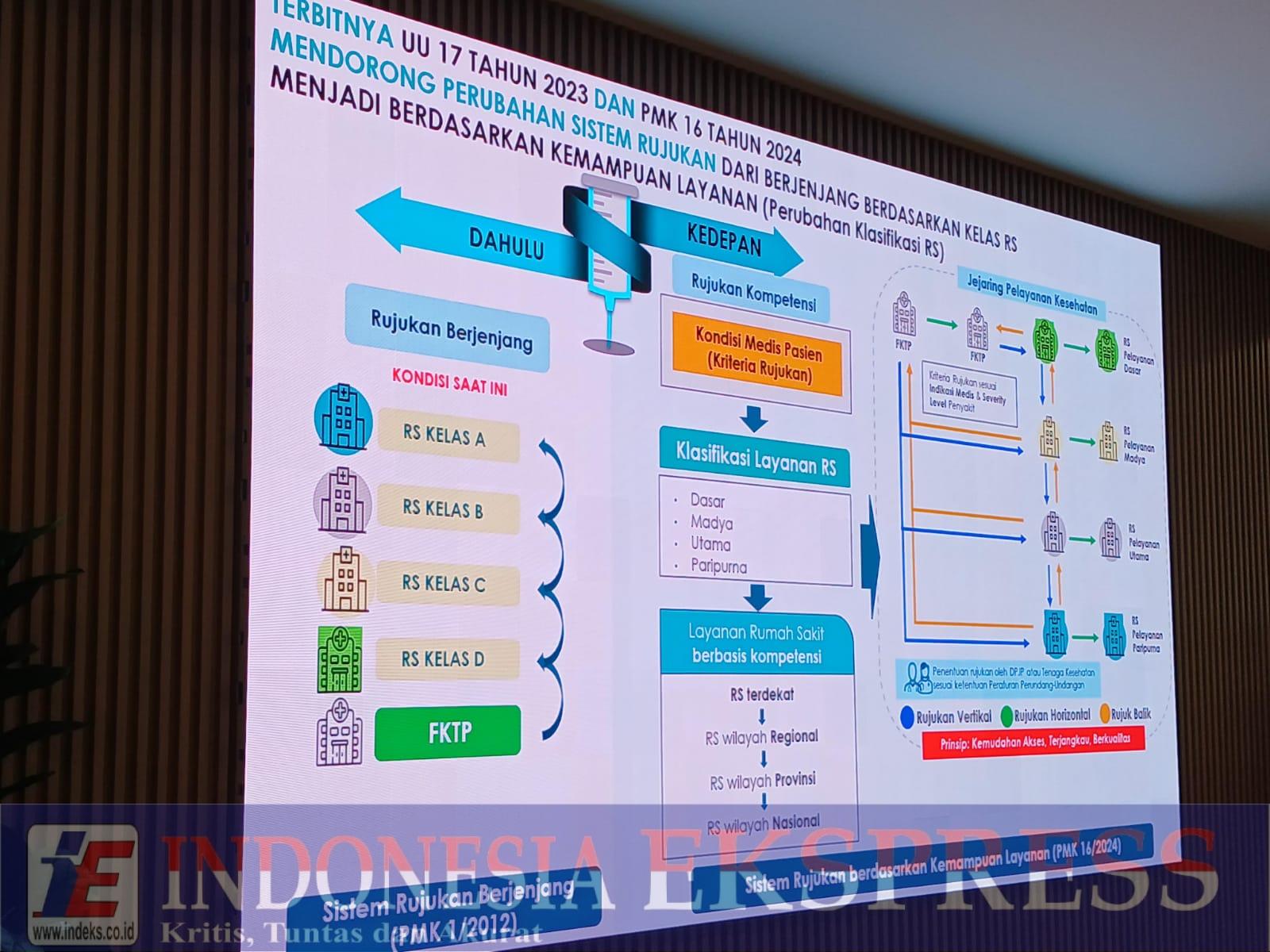 JAKARTA, INDEKS.co.id — Pemerintah mengumumkan rencana penghapusan sistem rujukan berjenjang dan menggantinya dengan rujukan berbasis kompetensi. Melalui sistem baru ini, peserta Jaminan Kesehatan Nasional (JKN) akan langsung diarahkan ke rumah sakit yang kompeten (mampu) menangani kondisi medisnya, tidak lagi berjenjang berdasarkan kelas D–C–B–A.