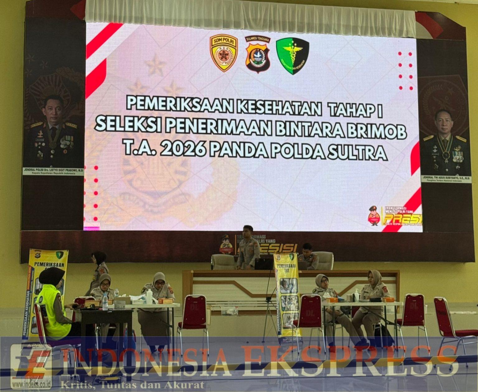 KENDARI, INDEKS.co.id — Polda Sulawesi Tenggara (Sultra) melalui Biro Sumber Daya Manusia melaksanakan Pemeriksaan Kesehatan (Rikkes) Tahap I bagi peserta seleksi Penerimaan Bintara Brimob Polri Tahun Anggaran 2026. Kegiatan berlangsung selama dua hari, 24–25 November 2025, di Aula Dhalas Polda Sultra.