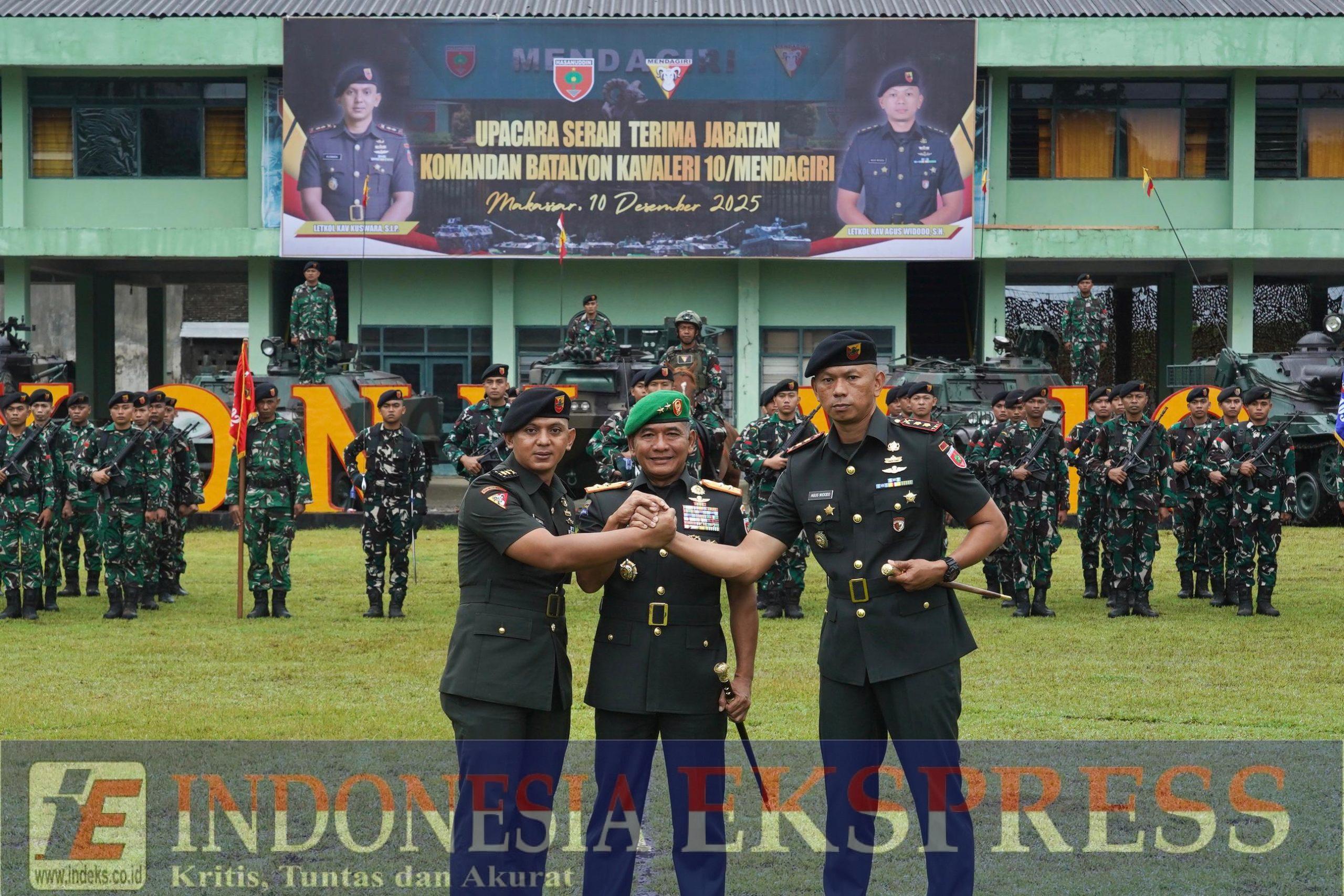 Makassar (INDEKS.co.id) – Pangdam XIV/Hasanuddin Mayjen TNI Bangun Nawoko memimpin Serah Terima Jabatan (Sertijab) Komandan Batalyon Kavaleri (Danyonkav) 10/Mendagiri dari Letkol Kav Kuswara, S.I.P., kepada Letkol Kav Agus Widodo, S.H., bertempat di Lapangan Mako Yonkav 10/Mendagiri, Jl. Perintis Kemerdekaan, Kota Makassar. Rabu, (10/12/2025).