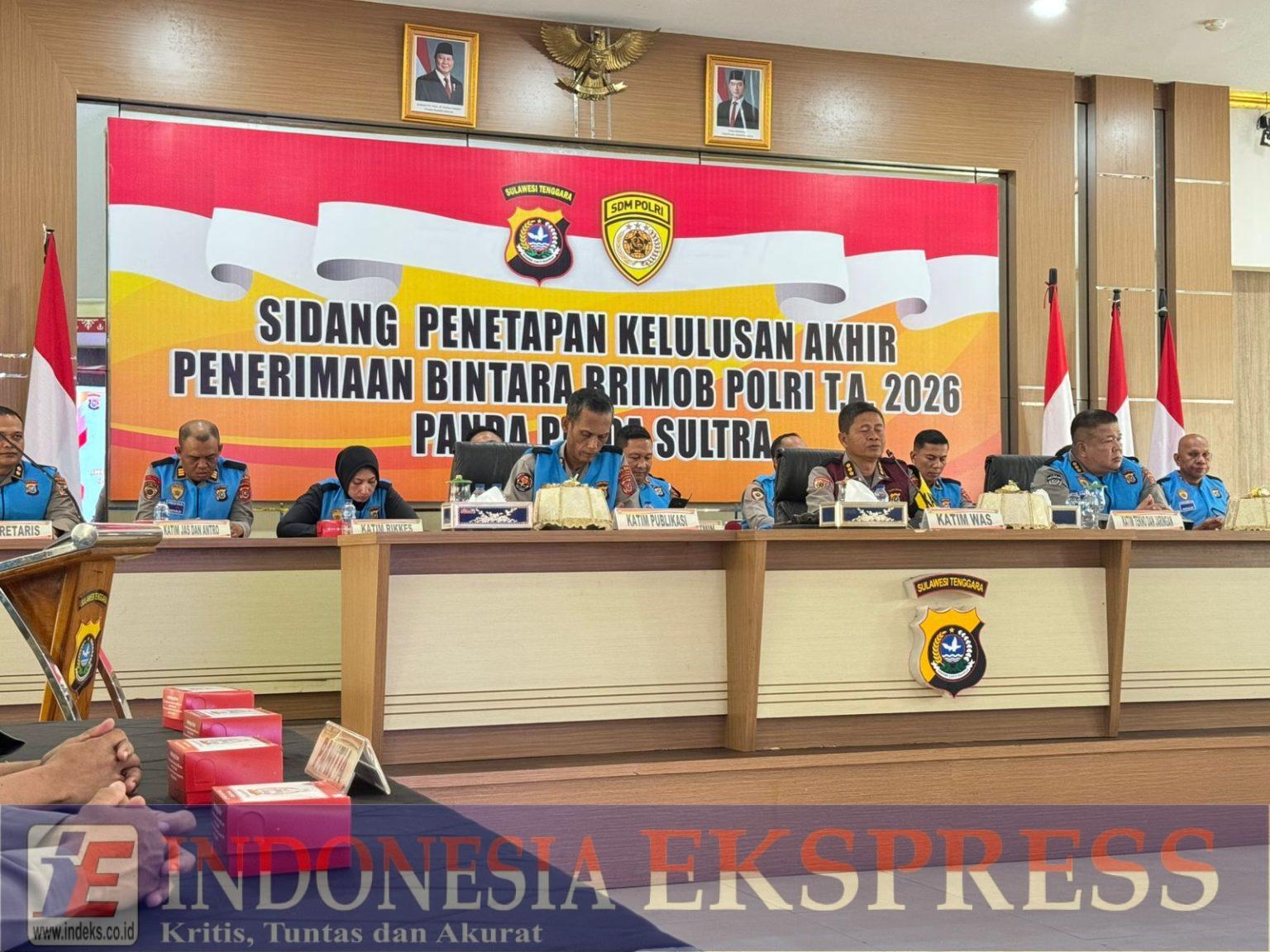 Kendari (INDEKS.CO.ID) — Kepolisian Daerah Sulawesi Tenggara (Polda Sultra) menetapkan sebanyak 63 calon siswa (casis) lulus terpilih dalam Sidang Penetapan Kelulusan Akhir Penerimaan Bintara Brimob Polri Tahun Anggaran 2026, dari total 559 peserta yang mengikuti seluruh tahapan seleksi.