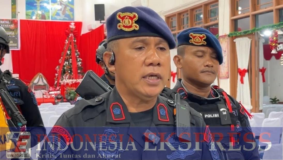 Kendari (INDEKS.CO.ID) — Detasemen Gegana Satuan Brimob Polda Sulawesi Tenggara (Sultra) melakukan sterilisasi terhadap 58 gereja di Kota Kendari menjelang perayaan malam Natal 2025 guna memastikan keamanan dan kenyamanan umat Kristiani dalam melaksanakan ibadah, Rabu (24/12/2025).