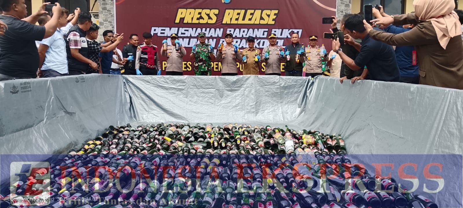 SOPPENG (INDEKS.CO.ID) — Kepolisian Resor (Polres) Soppeng, jajaran Polda Sulawesi Selatan, memusnahkan sebanyak 1.123 botol minuman keras (miras) berbagai merek hasil penindakan selama 2025. Pemusnahan tersebut digelar dalam rangka rilis akhir tahun di halaman Mapolres Soppeng, Selasa (30/12/2025).
