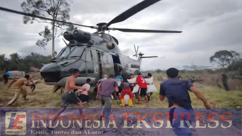 ACEH (INDEKS.CO.ID) — Helikopter Super Puma TNI Angkatan Udara yang diberangkatkan dari Lanud Soewondo, Medan berhasil mendarat di helipad darurat di Desa Sekumur, Kecamatan Sekarak, Kabupaten Aceh Tamiang, Minggu (28/12/2025).