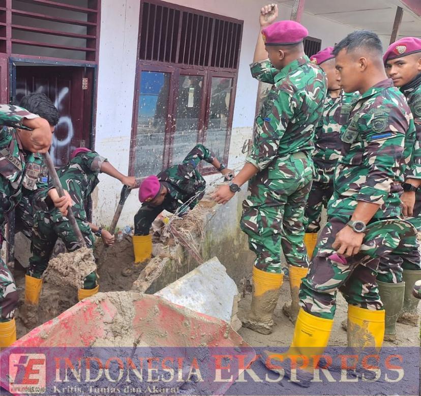 TAPANULI SELATAN (INDEKS.CO.ID) — Pasca bencana banjir yang melanda wilayah Kabupaten Tapanuli Selatan hingga saat ini Prajurit Petarung Korps Marinir tanpa menunggu kondisi benar-benar pulih terus melaksanakan pembersihan mulai parit, selokan, rumah warga, fasilitas umum, serta sekolah-sekolah yang terdampak lumpur, pasir, dan material kayu akibat banjir di Kecamatan Batang Toru dan Angkola Sangkunur, Tapanulis Selatan, Sumatera Utara, (Sumut), Selasa (30/12/2025).