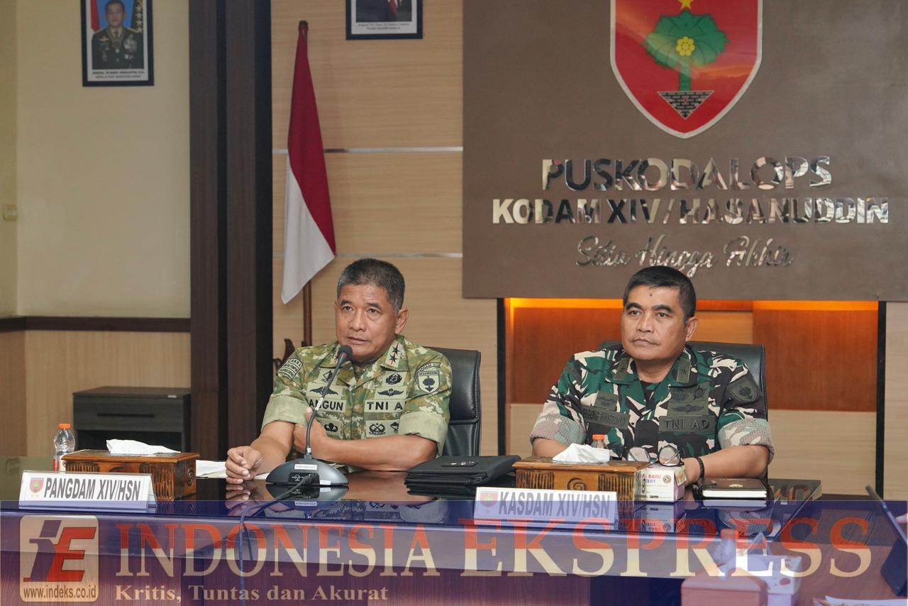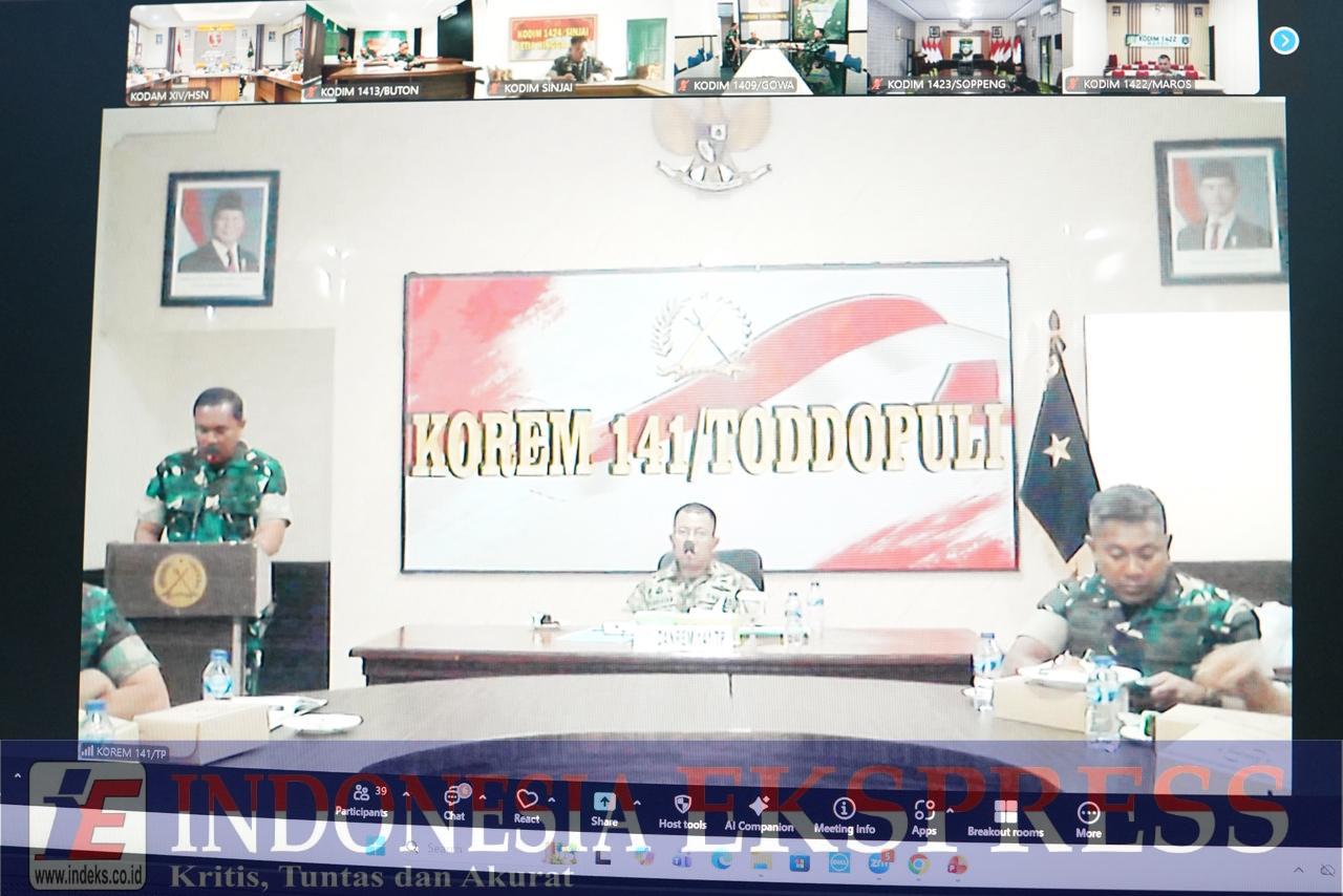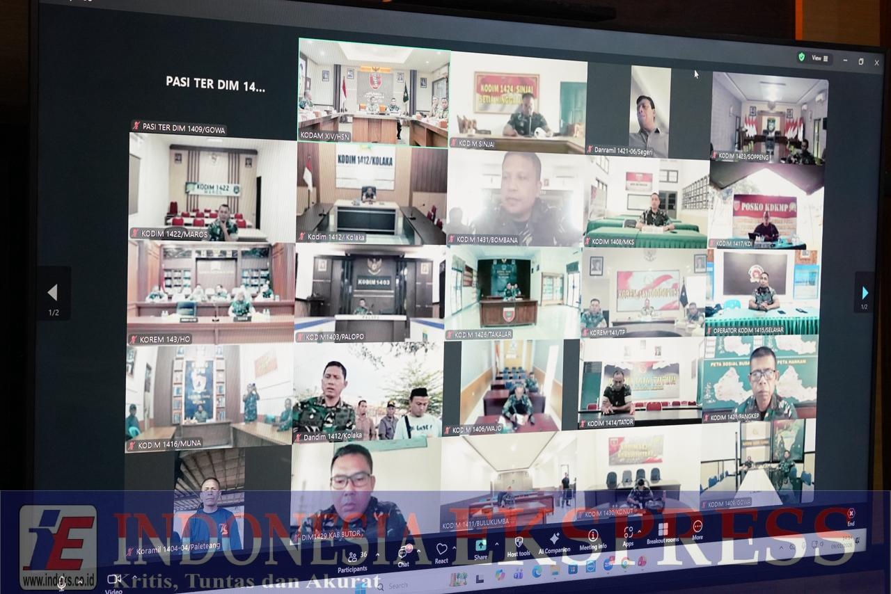 Makassar (INDEKS.co.id) — Pangdam XIV/Hasanuddin Mayjen TNI Bangun Nawoko menerima paparan Percepatan Pembangunan Koperasi Desa/Kelurahan Merah Putih (KDKMP) yang disampaikan oleh para Dandim jajaran Kodam XIV/Hasanuddin. Kegiatan tersebut dilaksanakan melalui video conference (vicon) dari Ruang Vicon Puskodalops, Makodam, Jl. Urip Sumoharjo, Kota Makassar. Jumat, (9/1/2026).
