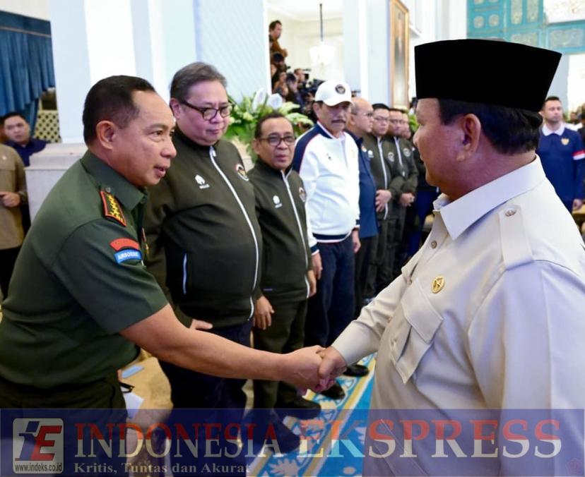 JAKARTA (INDEKS.co.id) — Panglima TNI Jenderal TNI Agus Subiyanto menghadiri acara penyerahan penghargaan dan bonus kepada para atlet serta pelatih Indonesia peraih medali pada ajang SEA Games ke-33 Thailand Tahun 2025. Penghargaan tersebut diserahkan langsung oleh Presiden Republik Indonesia Prabowo Subianto di Istana Negara, Jakarta, Kamis (8/1/2026), sebagai bentuk apresiasi negara atas prestasi dan dedikasi para atlet yang telah mengharumkan nama bangsa di tingkat internasional.