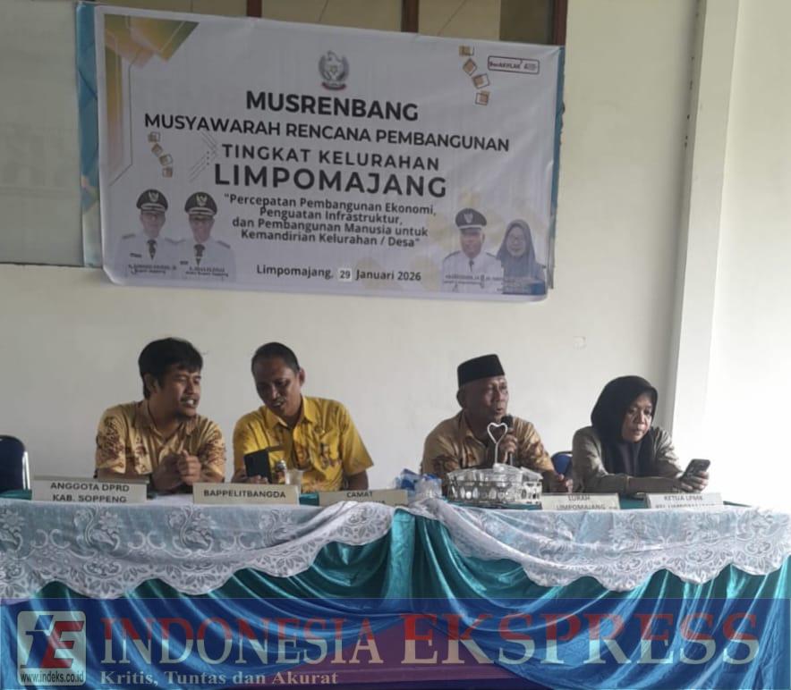 SOPPENG (INDEKS) — Pemerintah Kelurahan Limpomajang, Kecamatan Marioriawa, Kabupaten Soppeng, Sulawesi Selatan (Sulsel) menggelar Musyawarah Perencanaan Pembangunan (Musrenbang) tingkat kelurahan sebagai forum penjaringan aspirasi masyarakat, baru-baru ini, Kamis 29 Januari 2026.