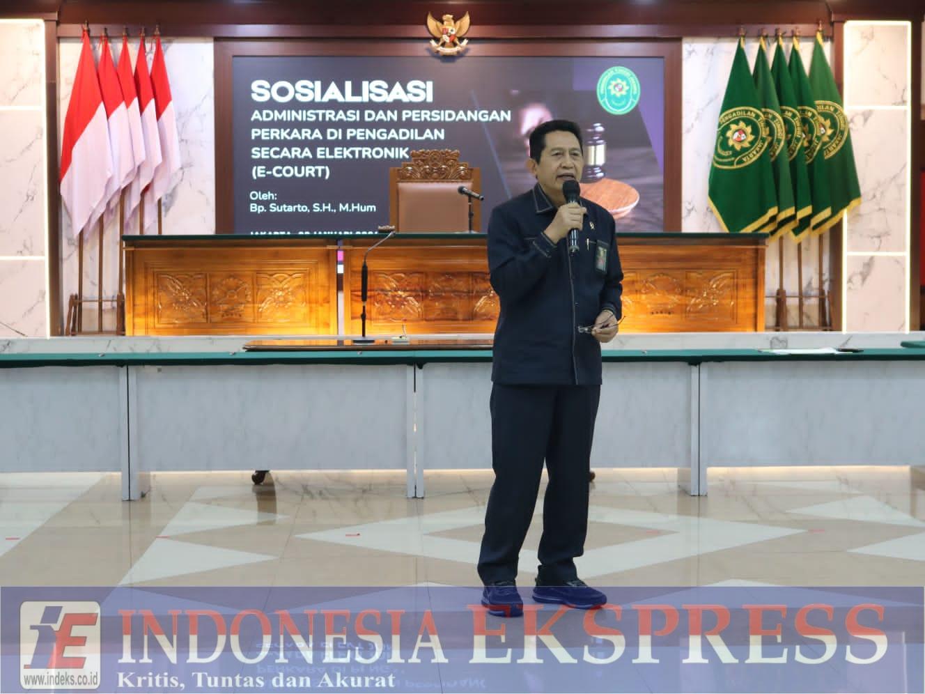 Kegiatan diawali dengan sosialisasi e-Court yang disampaikan oleh Sutarto, S.H., M.Hum., Hakim Tinggi Pengadilan Tinggi Jakarta, sebagai upaya memberikan pemahaman kepada calon advokat mengenai pemanfaatan layanan peradilan berbasis elektronik.