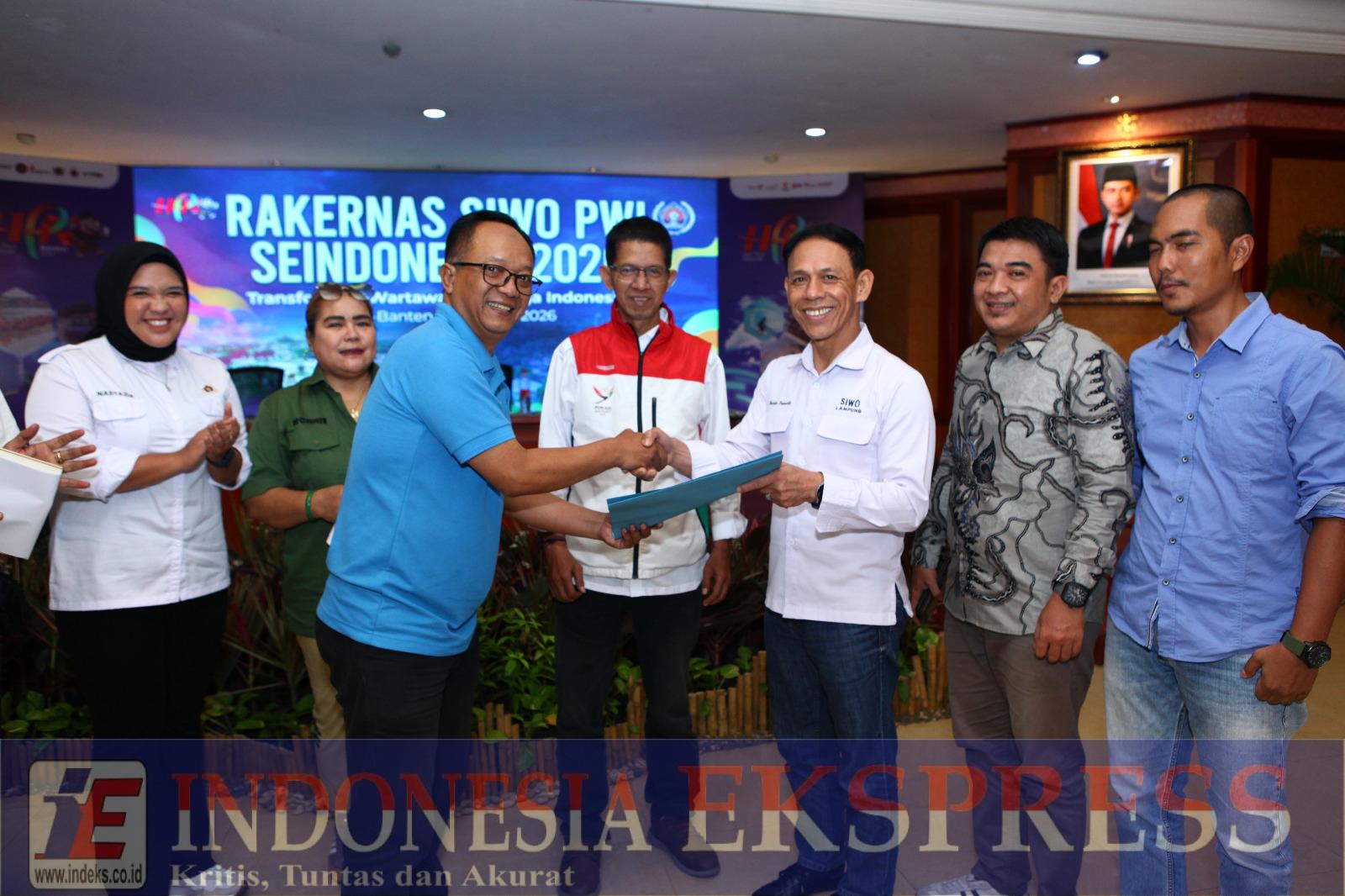 SERANG (INDEKS) – Rapat Kerja Nasional (Rakernas) Seksi Wartawan Olahraga Indonesia (SIWO) se-Indonesia secara resmi menetapkan Provinsi Lampung sebagai tuan rumah Pekan Olahraga Wartawan Nasional (Porwanas) 2027. Keputusan penting ini diambil dalam Rakernas SIWO yang digelar di Hotel Le Dian, Serang, Banten, Sabtu (7/2/2026).