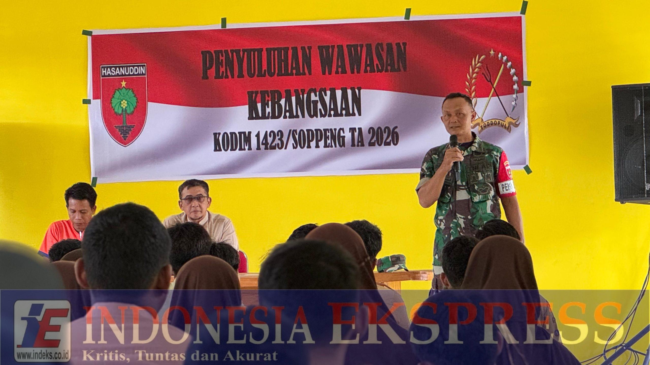 SOPPENG (INDEKS) – Program TNI Manunggal Membangun Desa (TMMD) ke-127 yang digelar Kodim 1423/Soppeng tidak hanya berfokus pada pembangunan infrastruktur, tetapi juga penguatan karakter generasi muda melalui penyuluhan wawasan kebangsaan (Wasbang) di SMPN 2 Liliriaja, Kabupaten Soppeng, Jum’at (13/2/2026).