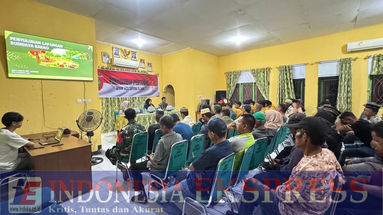 Soppeng (INDEKS) — Satuan Tugas TNI Manunggal Membangun Desa (TMMD) ke-127 Kodim 1423/Soppeng menggelar penyuluhan pertanian komoditas kakao, cabai dan tomat sebagai bagian dari program nonfisik TMMD, Senin (16/2/2026).