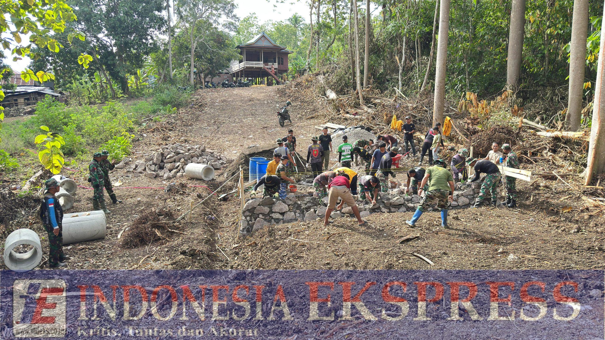 Kegiatan tersebut dilaksanakan secara gotong royong dengan melibatkan personel Satgas TMMD, masyarakat setempat, serta mahasiswa. Pembangunan pondasi gorong-gorong itu ditujukan untuk memperlancar aliran air dan meningkatkan kualitas badan jalan, khususnya saat musim hujan.