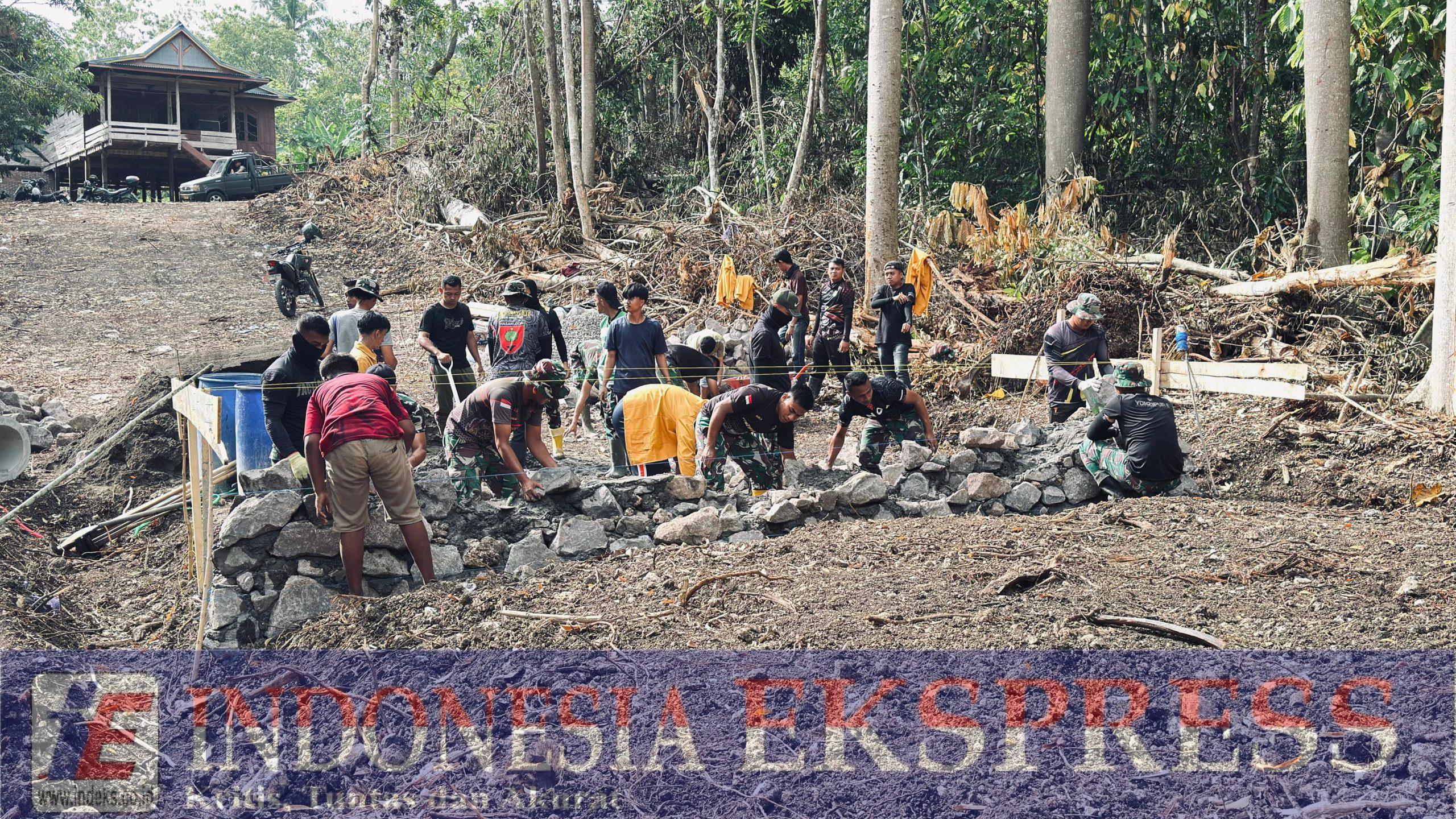Soppeng (INDEKS) – Satuan Tugas TNI Manunggal Membangun Desa (TMMD) Ke-127 Kodim 1423/Soppeng bersama warga dan mahasiswa Universitas Lamappapoleonro (ULN) membangun pondasi decker gorong-gorong di Jalan Perintisan sebagai bagian dari peningkatan infrastruktur desa.