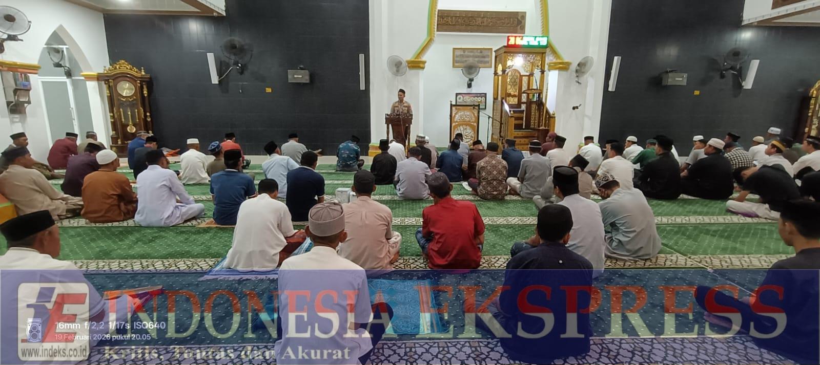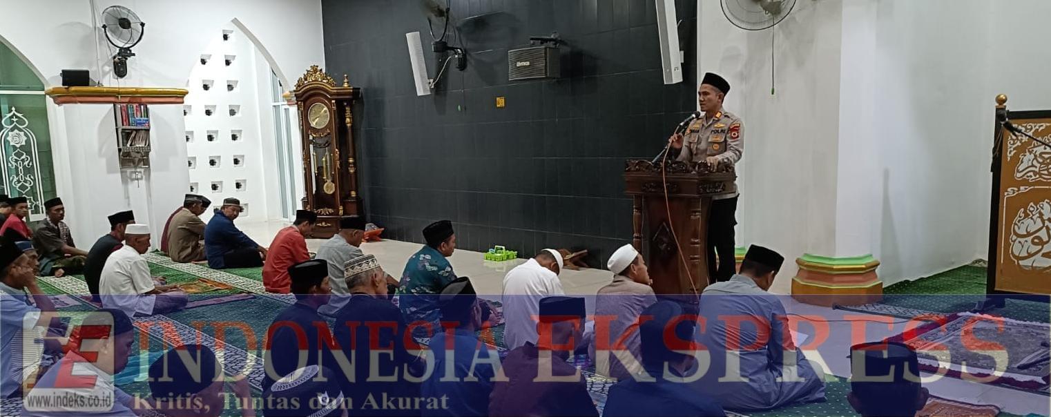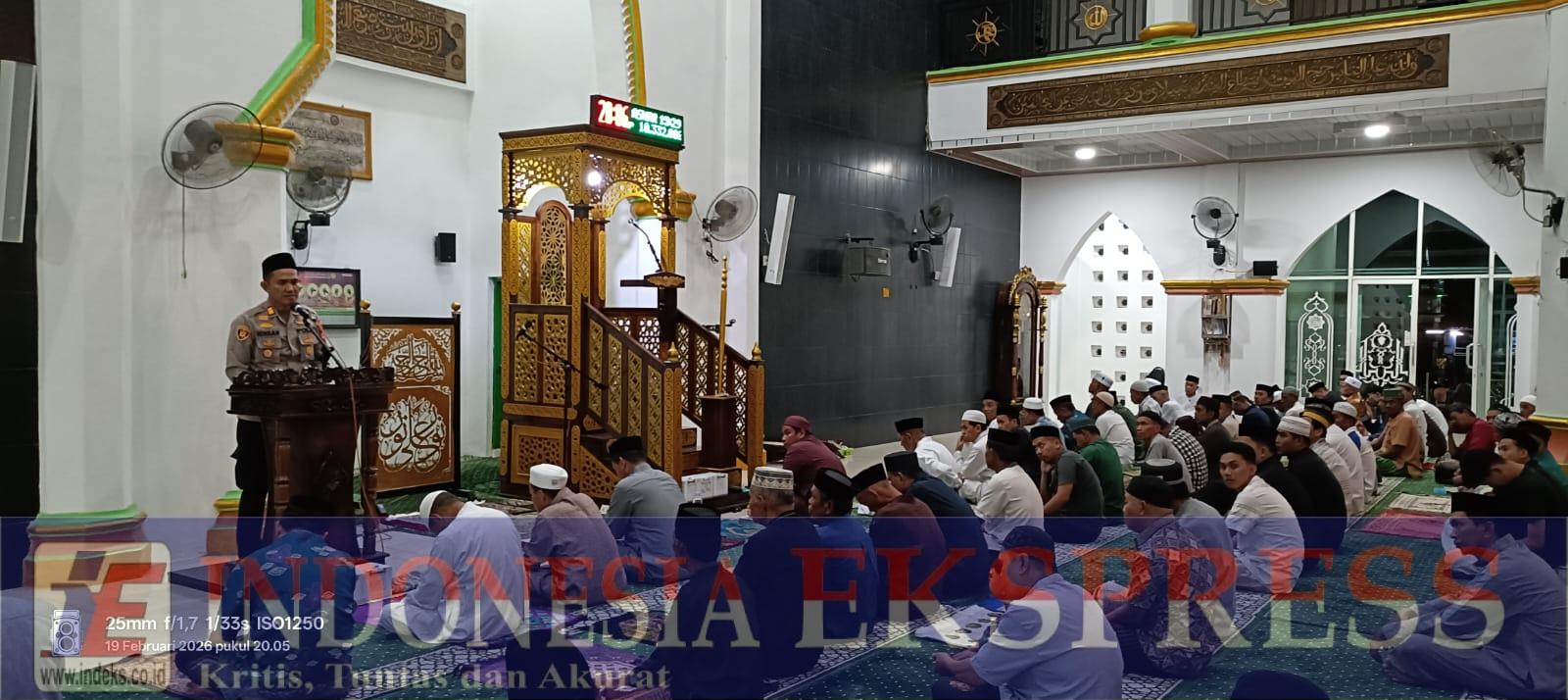 Kegiatan yang berlangsung pukul 19.30 WITA tersebut diawali dengan shalat Isya berjamaah bersama masyarakat, kemudian dilanjutkan dengan penyampaian imbauan Kamtibmas serta shalat Tarawih berjamaah.