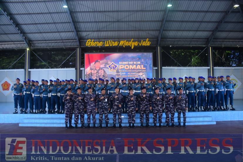 Surabaya (INDEKS) — Dalam rangka memperingati Hari Ulang Tahun (HUT) ke-80 Polisi Militer Angkatan Laut (Pomal) Tahun 2026, Panglima Komando Armada II (Pangkoarmada II) Laksda TNI I G. P. Alit Jaya, S.H., M.Si., memimpin Apel Khusus yang digelar di Indoor Sport Koarmada II, Ujung Surabaya, Jumat (20/2). Kegiatan tersebut diikuti prajurit dan PNS Koarmada II sebagai bentuk penghormatan atas delapan dekade pengabdian dalam mendukung tugas TNI Angkatan Laut.
