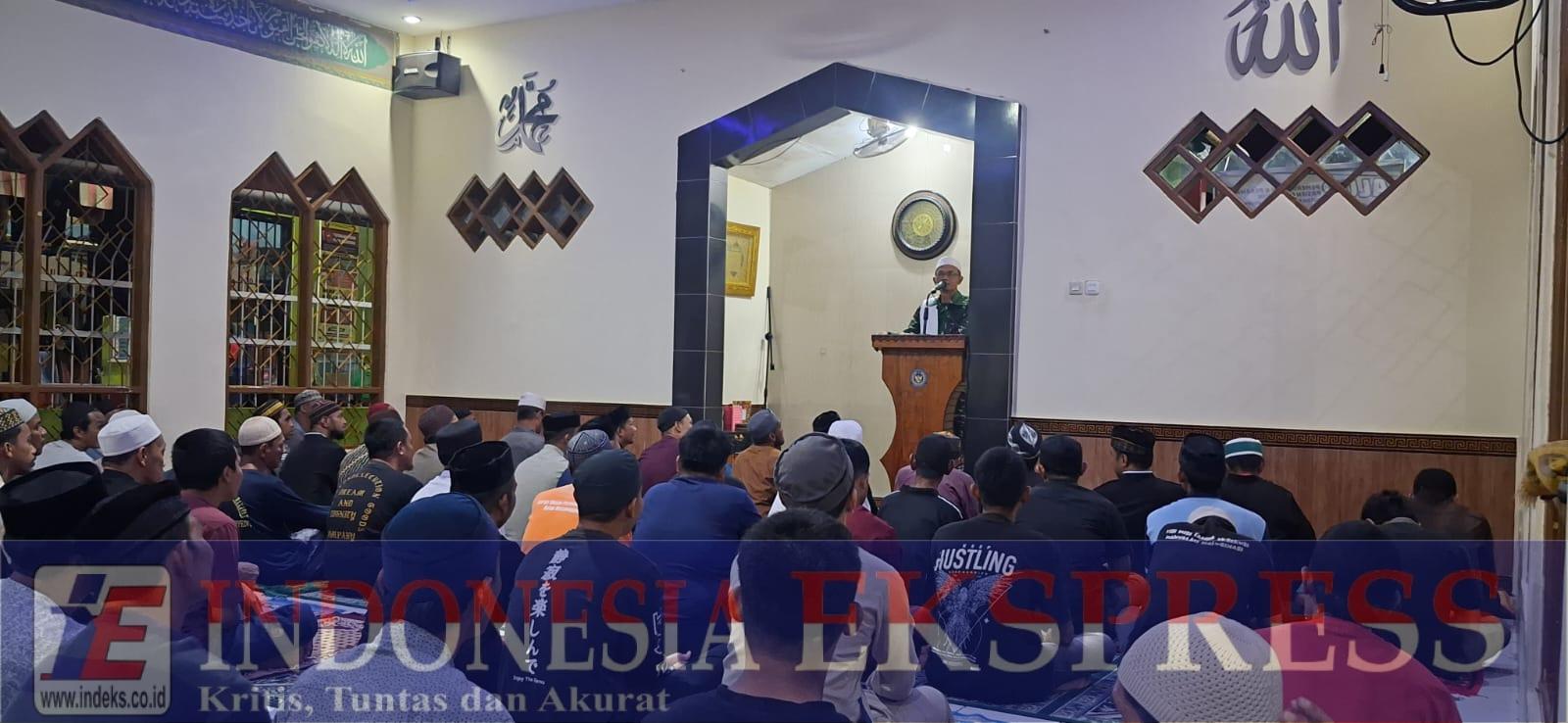 Soppeng (INDEKS) — Suasana hangat dan penuh kekeluargaan menyelimuti Masjid Attaubah Kompleks Rutan Kelas IIB Watansoppeng, kabupaten Soppeng, Sulawesi Selatan (Sulsel) pada malam ketujuh Ramadhan 1447 Hijriah. Kapten Inf Irfan Nasir, Pasilog Kodim 1423/Soppeng, yang juga dikenal sebagai dai di kalangan masyarakat, menyampaikan kajian Ramadhan yang diawali keceriaan dan ditutup dengan suasana haru, Selasa 24 Februari 2026.