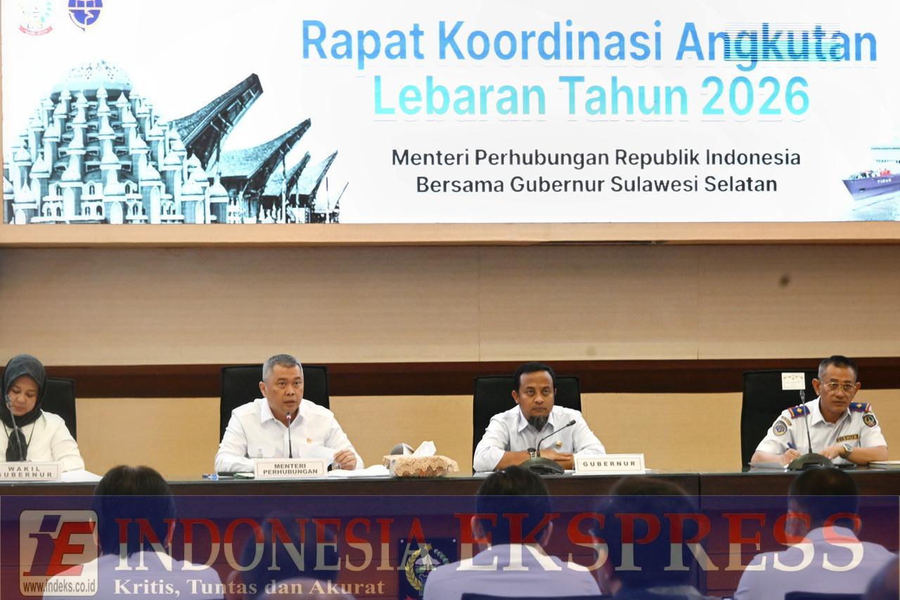 Makassar (INDEKS) — Menteri Perhubungan Dudy Purwagandhi melakukan sinergi kesiapan penyelenggaraan angkutan Lebaran 2026 dengan Gubernur Sulawesi Selatan Andi Sudirman Sulaiman, di Kantor Gubernur Sulsel, Jum’at (27/2). Koordinasi dilakukan mengingat berdasarkan hasil survei Badan Kebijakan Transportasi (BKT), Sulsel merupakan salah satu provinsi asal dan tujuan favorit pemudik tahun ini, serta merupakan gerbang utama menuju Indonesia Bagian Timur.