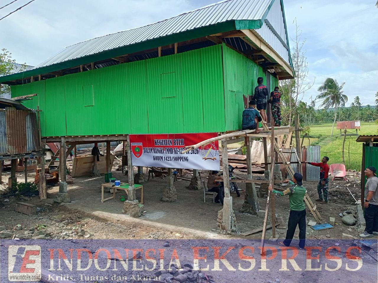 Soppeng (INDEKS) — Memasuki hari ke-16 pelaksanaan TNI Manunggal Membangun Desa (TMMD) ke-127, jajaran Kodim 1423/Soppeng bersama masyarakat melanjutkan rehabilitasi rumah tidak layak huni (RTLH) di Dusun Lenrang, Desa Jampu, Kecamatan Liliriaja, Kabupaten Soppeng, Sabtu 28 Februari 2026.