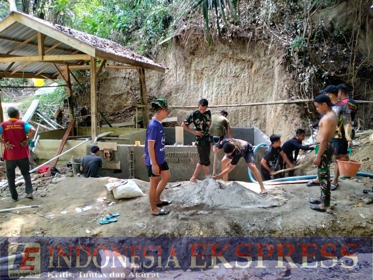 Sebanyak 15 personel TNI bersama delapan warga setempat terlibat langsung dalam pengerjaan di lapangan. Kolaborasi tersebut mencerminkan sinergi dan semangat gotong royong antara aparat dan masyarakat dalam mendukung penyediaan sarana air bersih di wilayah pedesaan.