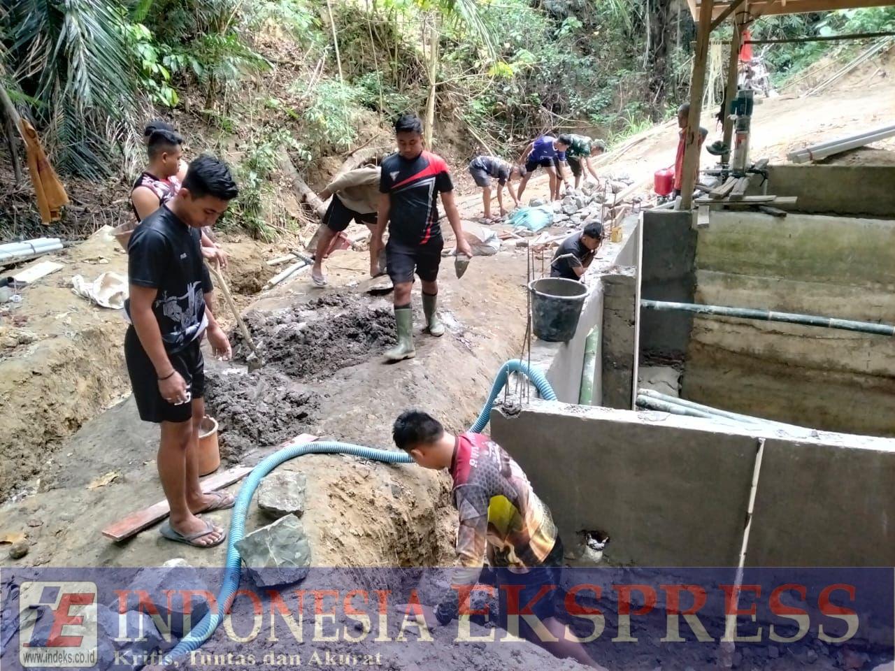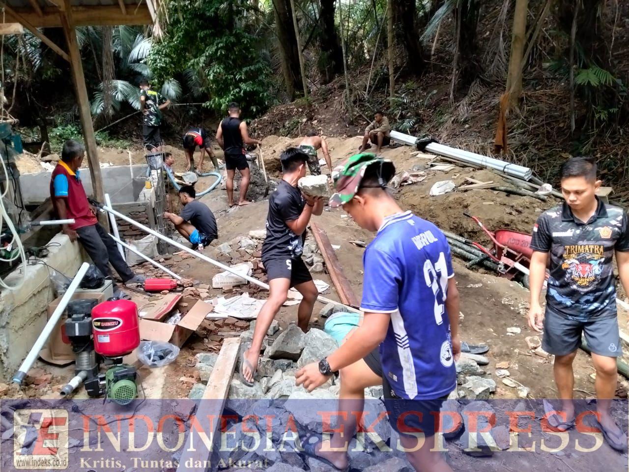 Adapun tahapan pekerjaan yang tengah dilaksanakan meliputi pelansiran batu gunung sebagai material utama, plester dinding sumur, serta pembuatan pondasi penahan air sungai untuk memperkuat konstruksi. Selain itu, dilakukan uji coba mesin guna memastikan sistem sumur bor berfungsi optimal sebelum dimanfaatkan oleh masyarakat.