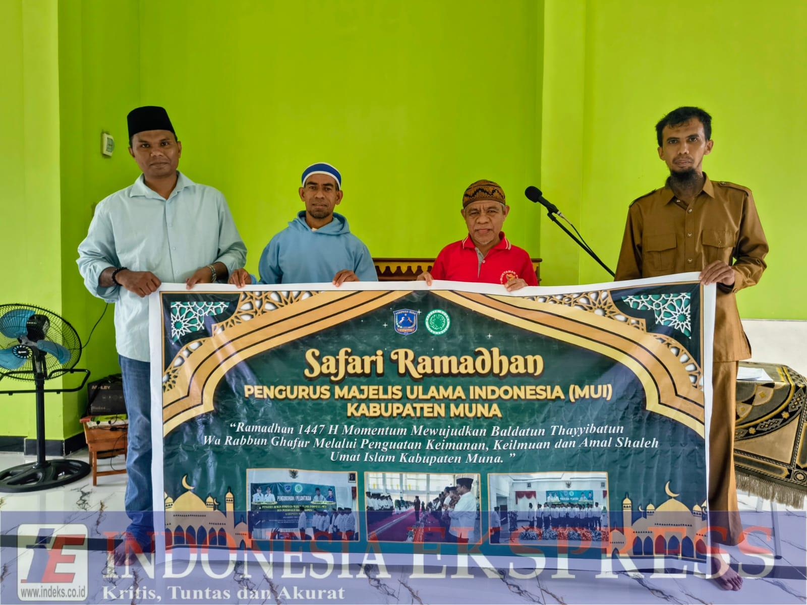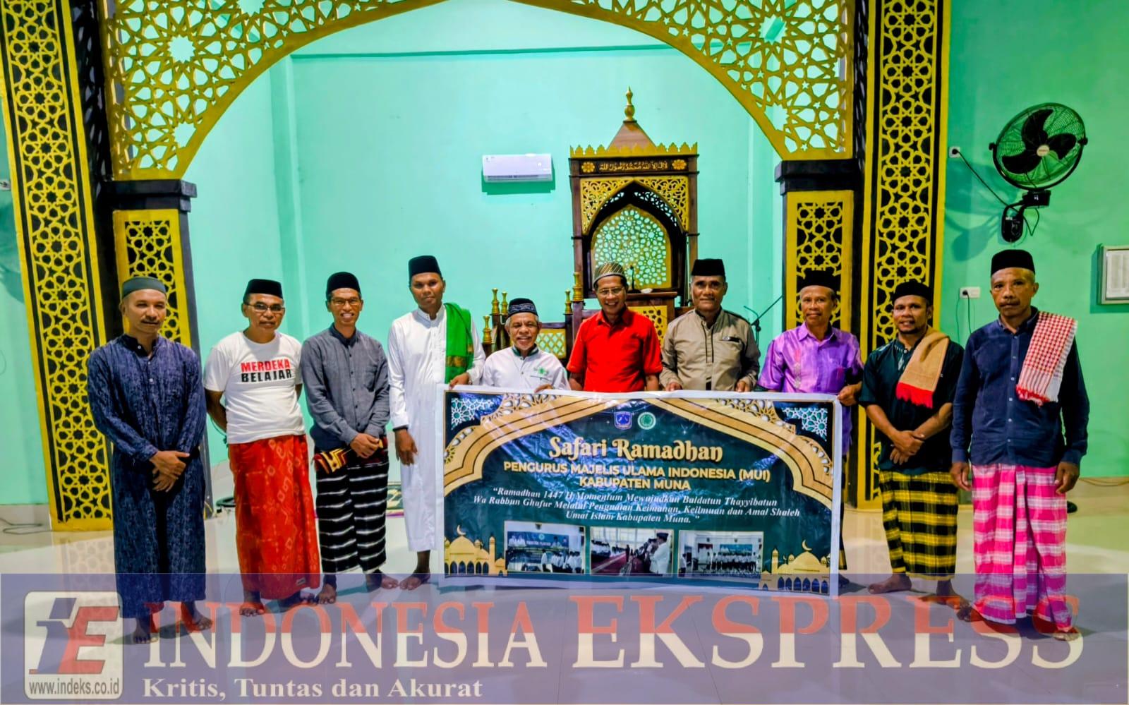 MUNA (INDEKS) — Pengurus Majelis Ulama Indonesia (MUI) Kabupaten Muna bersama Forum Tenaga Kesehatan Kabupaten Muna menyalurkan bantuan satu unit mimbar untuk Masjid Al Furqon Pola, Kecamatan Pasir Putih, Kabupaten Muna, Sulawesi Tenggara, di sela kegiatan Safari Ramadan 1447 Hijriah, Senin dini hari (9/3).