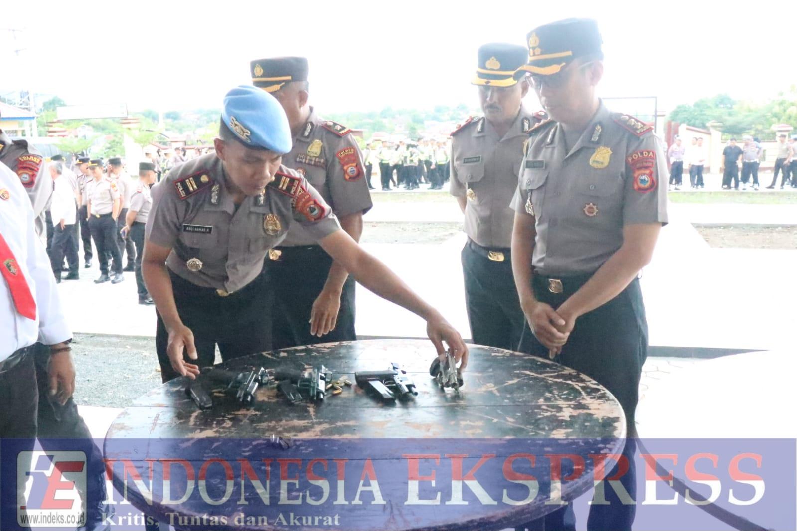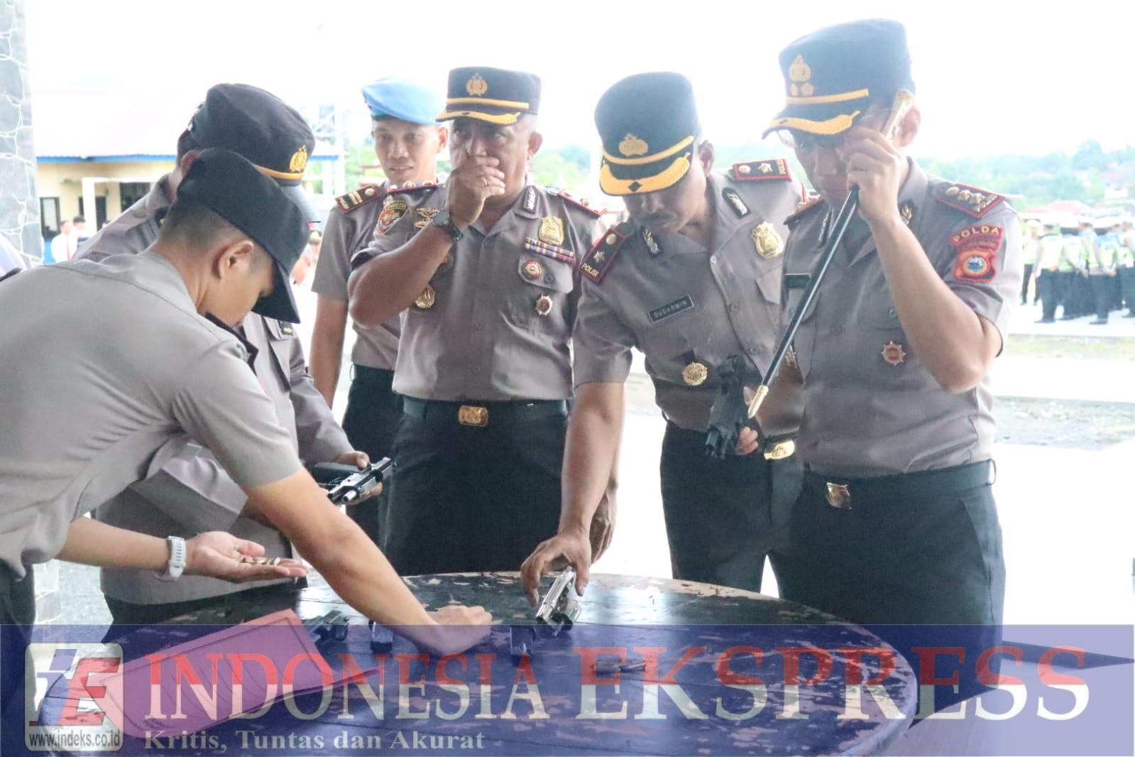 Dalam kegiatan tersebut, petugas melakukan pengecekan terhadap kondisi fisik senjata api, kebersihan, kelengkapan amunisi, serta dokumen izin pemegang senpi dari masing-masing personel.